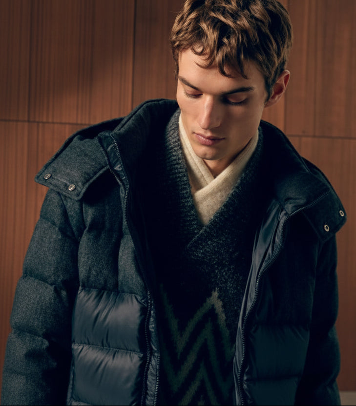Precision, simple anti-conformism, style at the service of the functionality of the product, obsessive attention to detail and the perfect fit; passion and devotion, courage and innovation, research and dexterity combined with the ethics of craftsmanship, respect for people and care for surroundings. This is Herno's philosophy, which gives substance and structure to all-Italian excellence.
