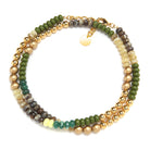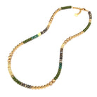 Pretty little spheres in colors of the earth, sea & forest with metallic highlights create our cool and easy everyday Amelia Necklace. May be worn long or doubled or layered.