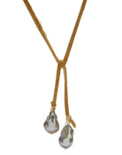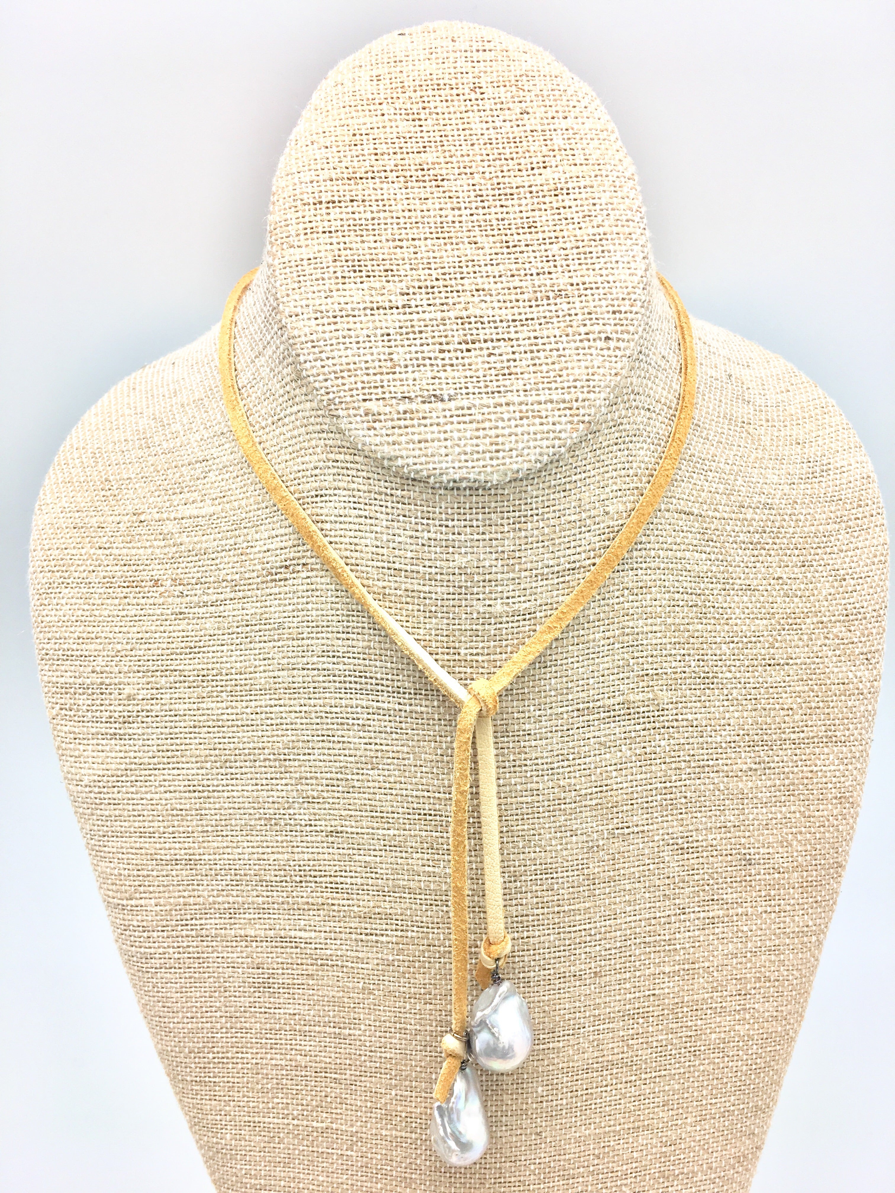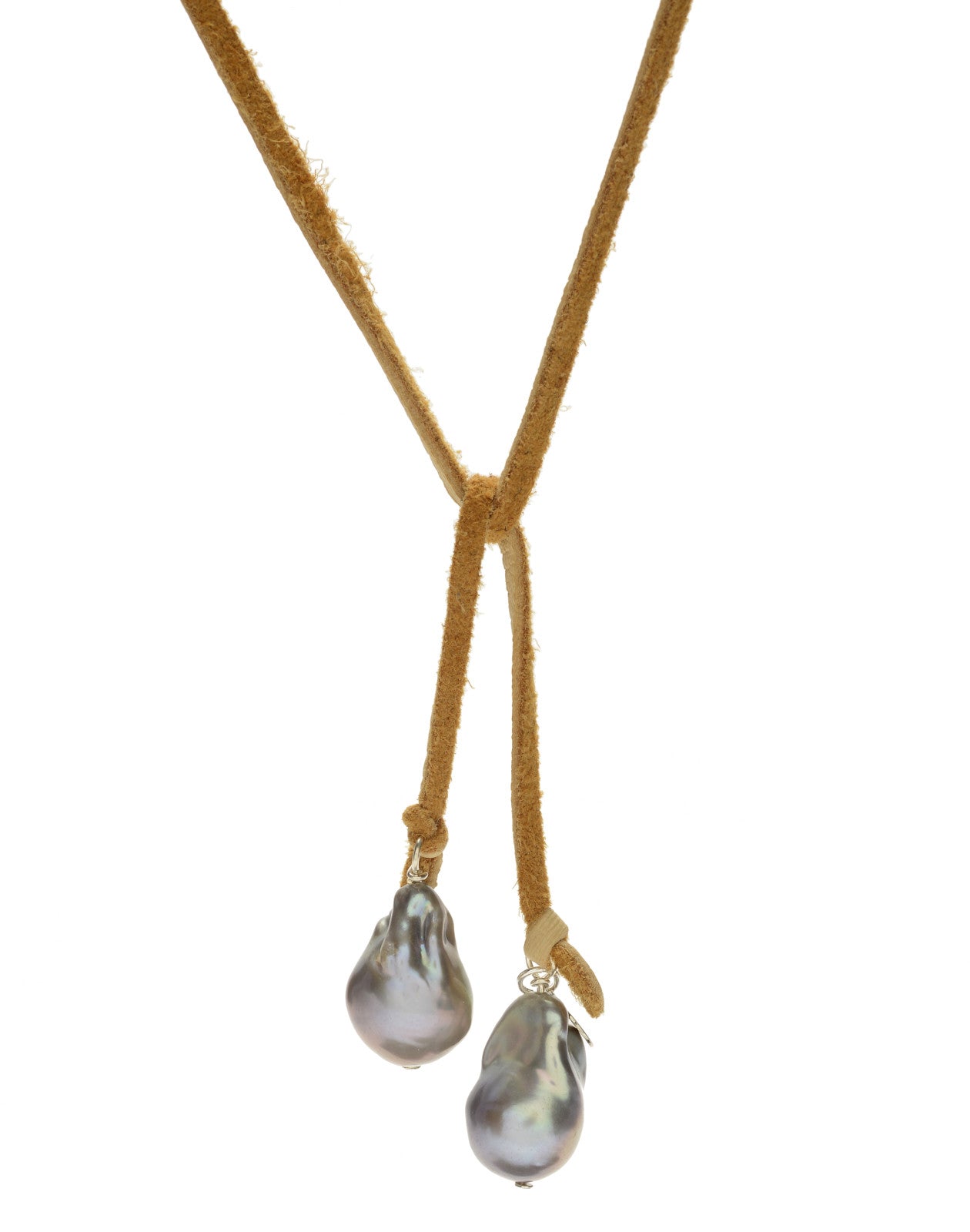 Grey baroque pearls on beige deer skin