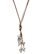 Beautiful long necklace in Greek leather with a stunning pearl cluster drop.