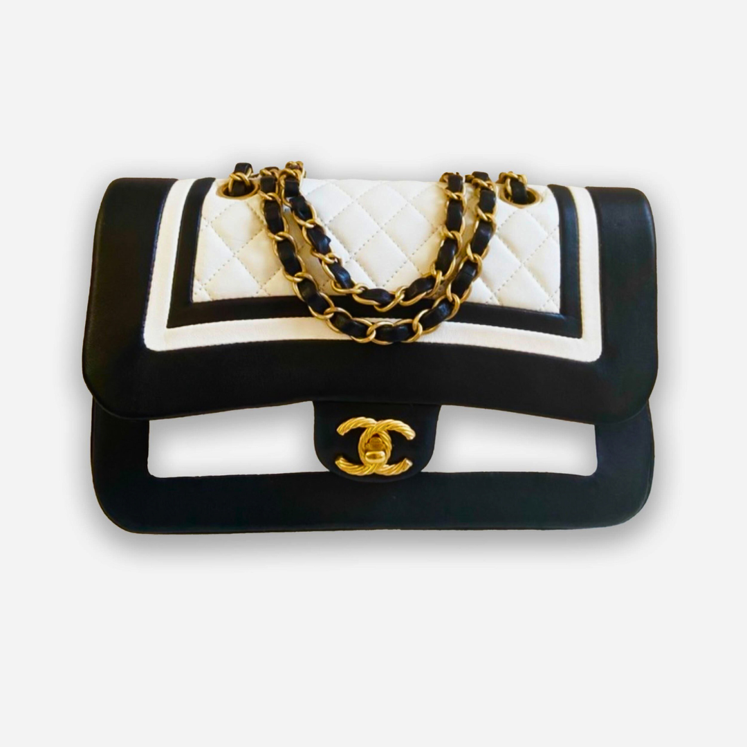The Chanel White and Black Cosmopolitan Purse is a stunning bi-color flap bag crafted from textured lambskin. This elegant accessory features a sophisticated design that enhances any outfit. All Chanel bags ship with an official certificate of Authenticity, ensuring they are expertly authenticated and genuine. For more information or to inquire about a specific vintage style, please contact the Richmond Store.
