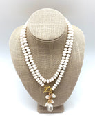 Extremely elegant and eye catching piece with faceted semiprecious stones and a pearl cluster drop. Wear it short or long.
