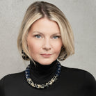 The Helaine Necklace unites patterns of the animal kingdom with cylinders of tinted light.