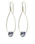 Gold fill wire with a peacock oversized pearl. Total drop 2 3/4".