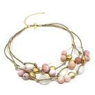 Matte White Crystal And Natural Pink Opal Waxed Linen And Putty Leather Torsade Necklace