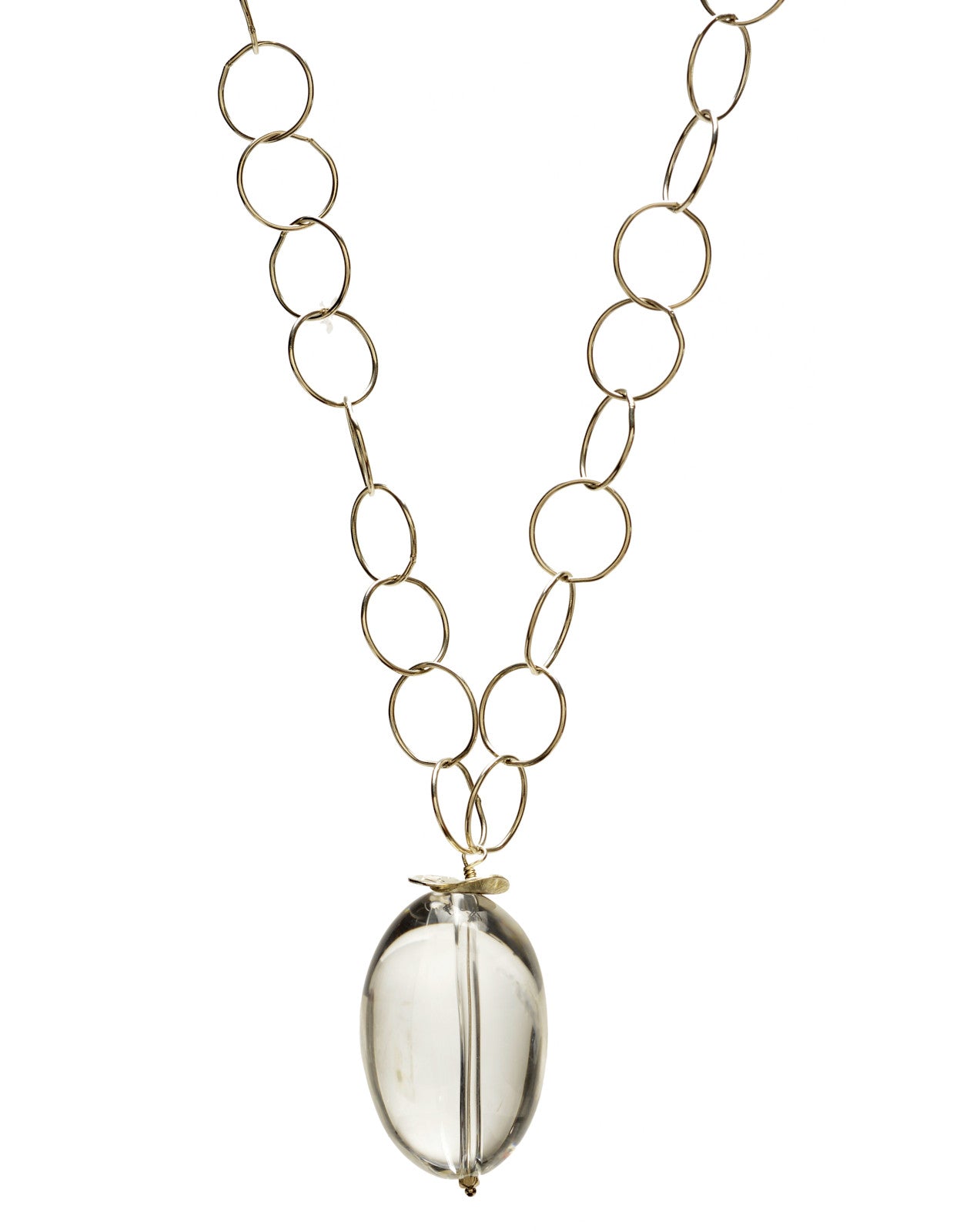 Large clear crystal of the best quality on a sterling silver chain. Can be worn long or short.