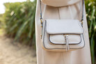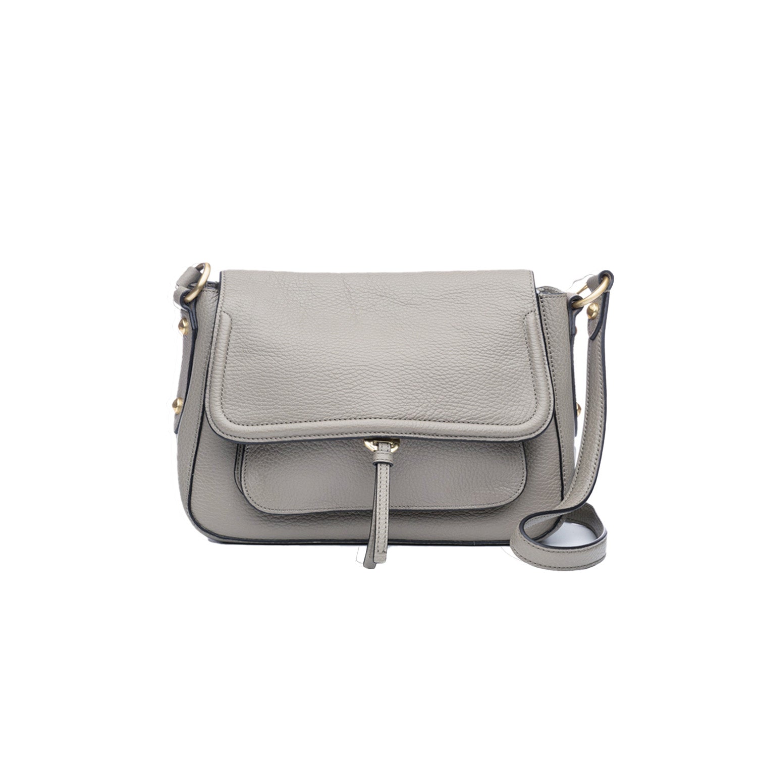 Sleek modern shaped satchel with pockets inside and outside makes this an essential everyday bag. Comes with a zippered compartment and adjustable cross-body strap. Made from Premium Italian Pebble Leather.
