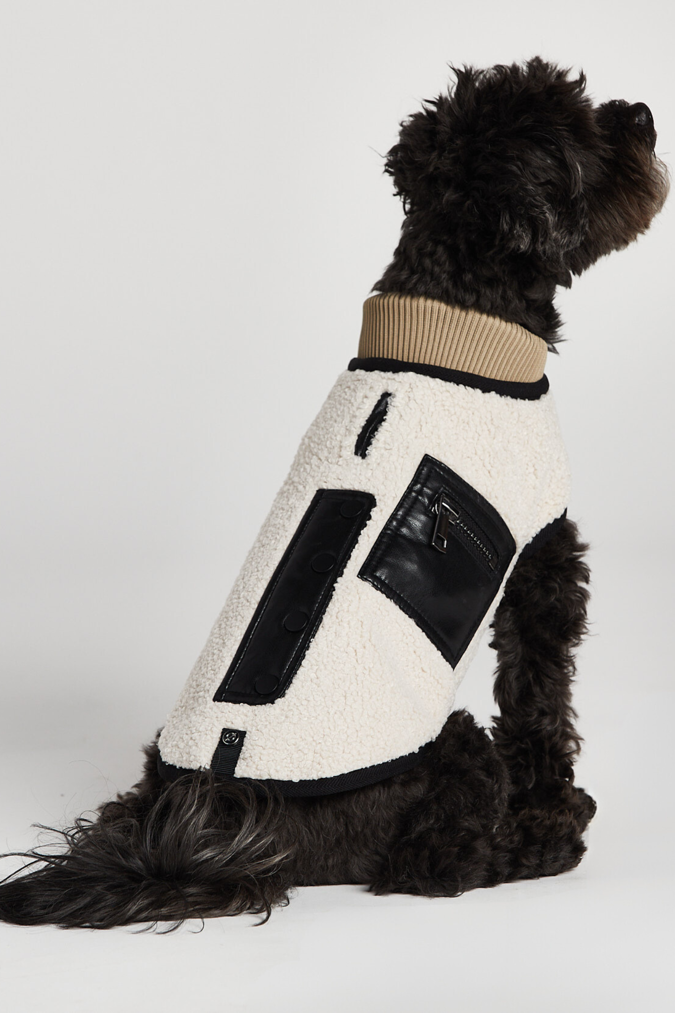 Peluche Faux Shearling Adjustable Coat w/ Vegan Leather Trim
