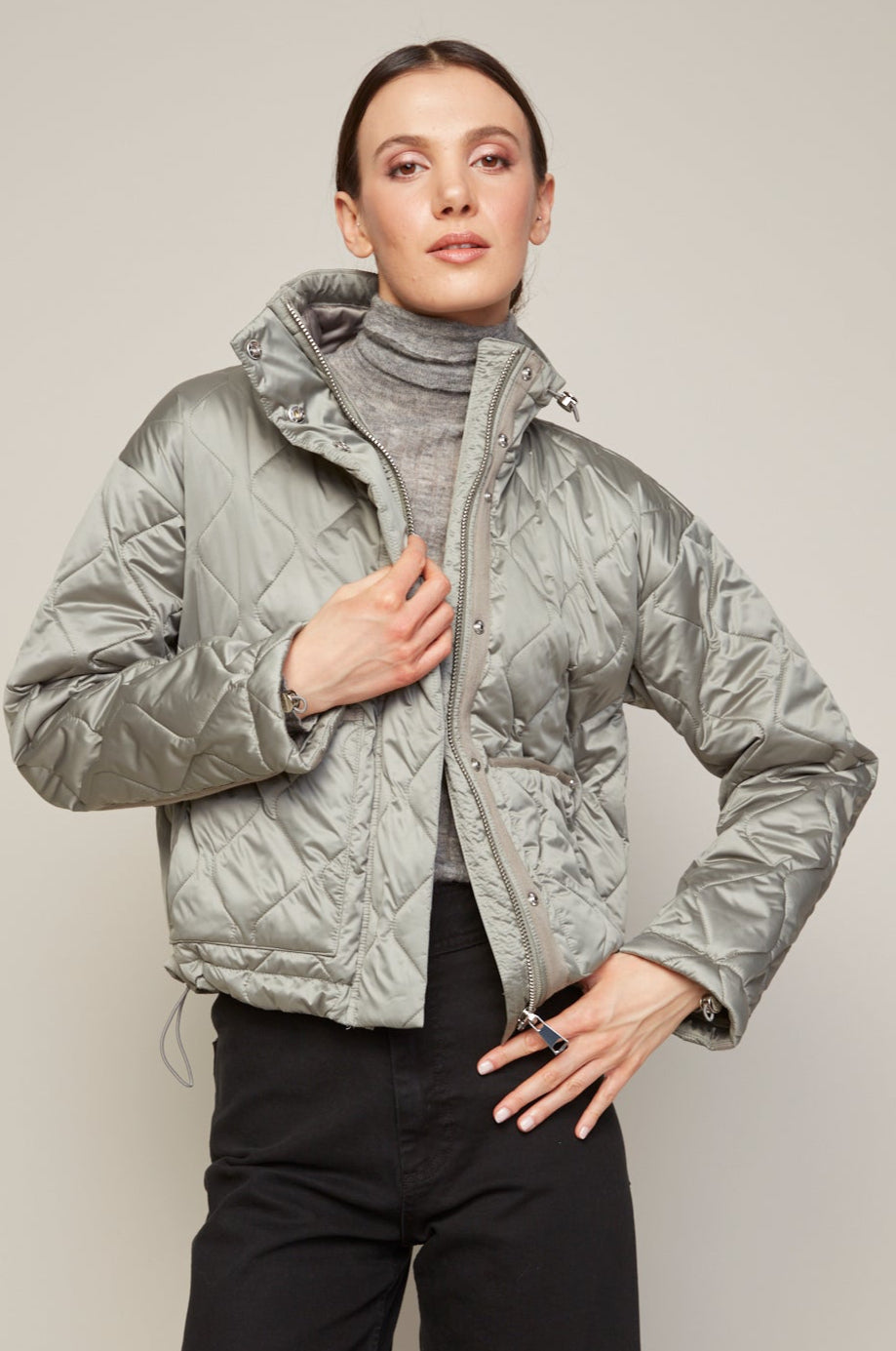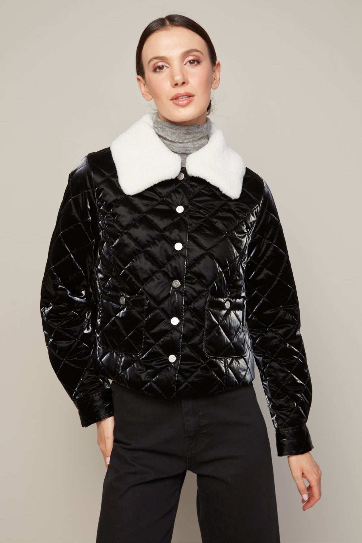 Becca short quilted jacket w/removable collar