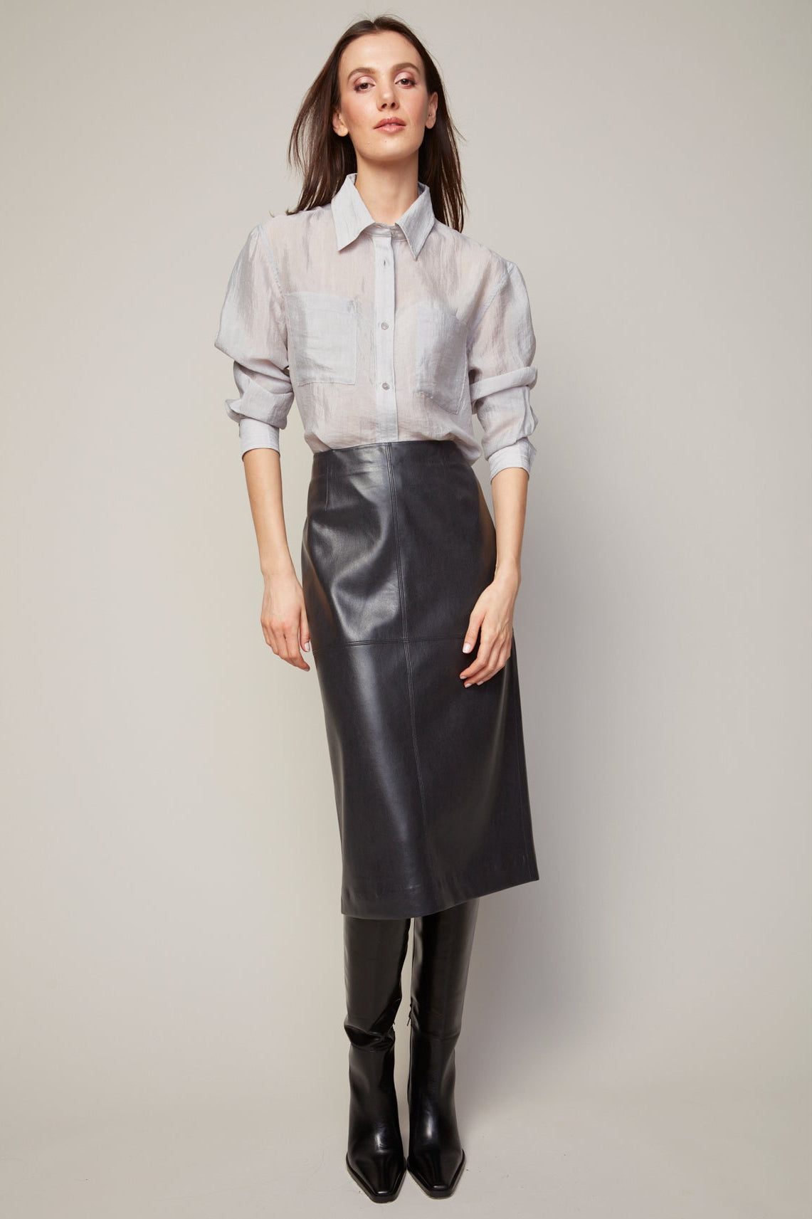 Brandy stretch vegan leather pencil skirt