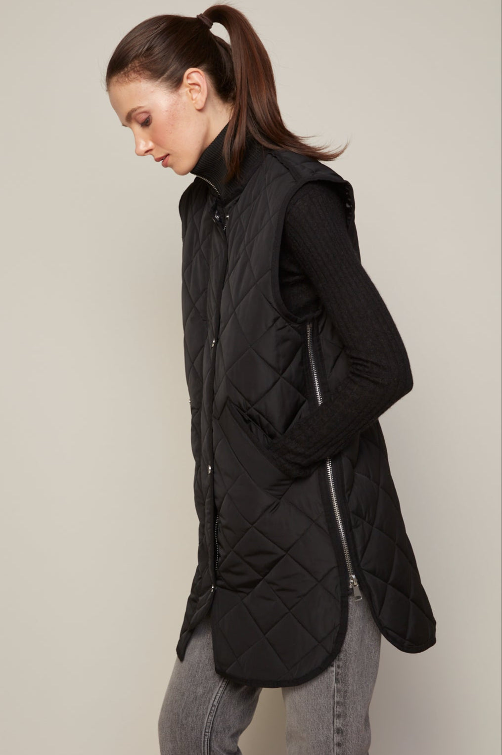 Destiny sleeveless quilted vest with zipper detail