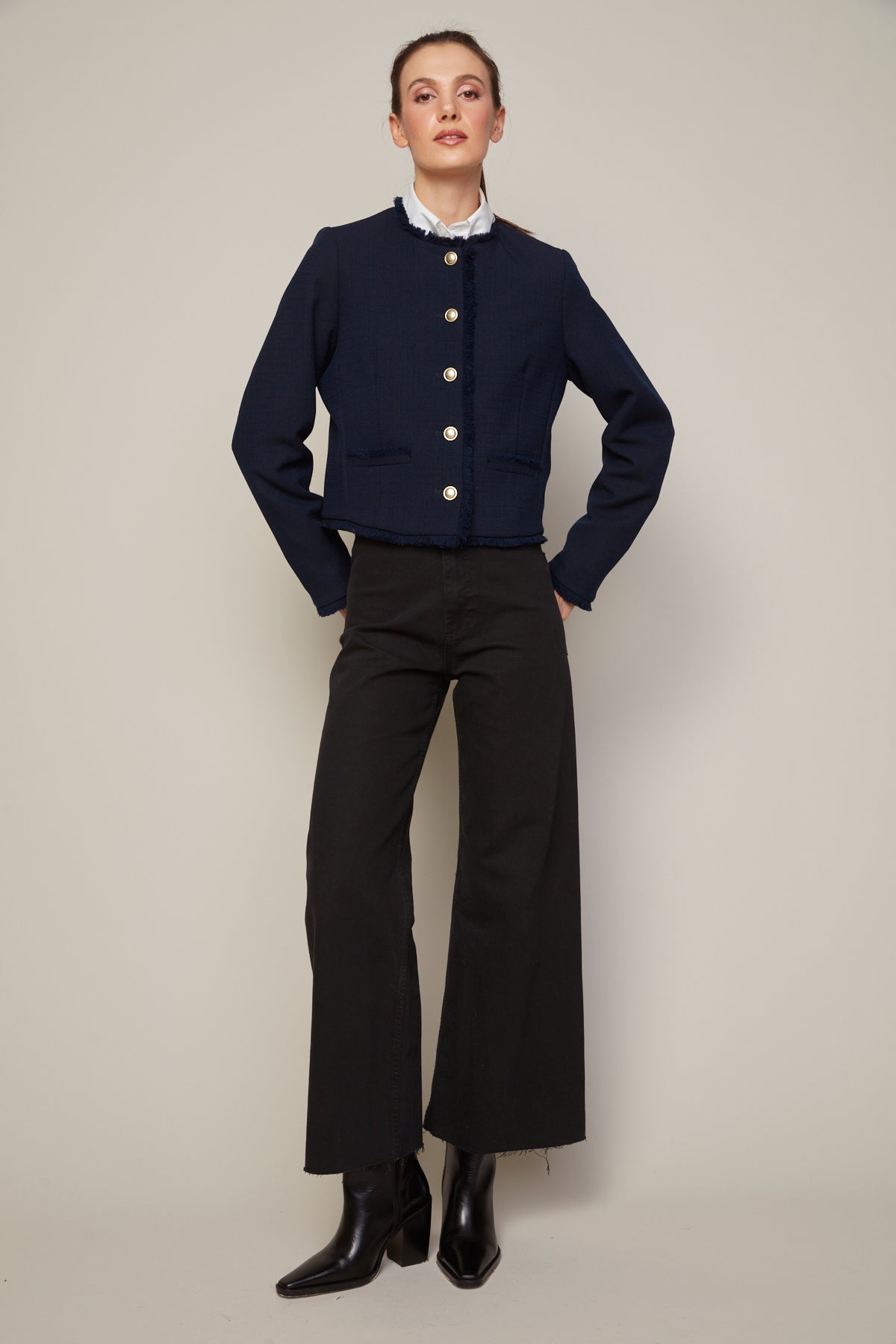 Size: Model is 5'9 1/2" and wears a size S. Back length is 19".