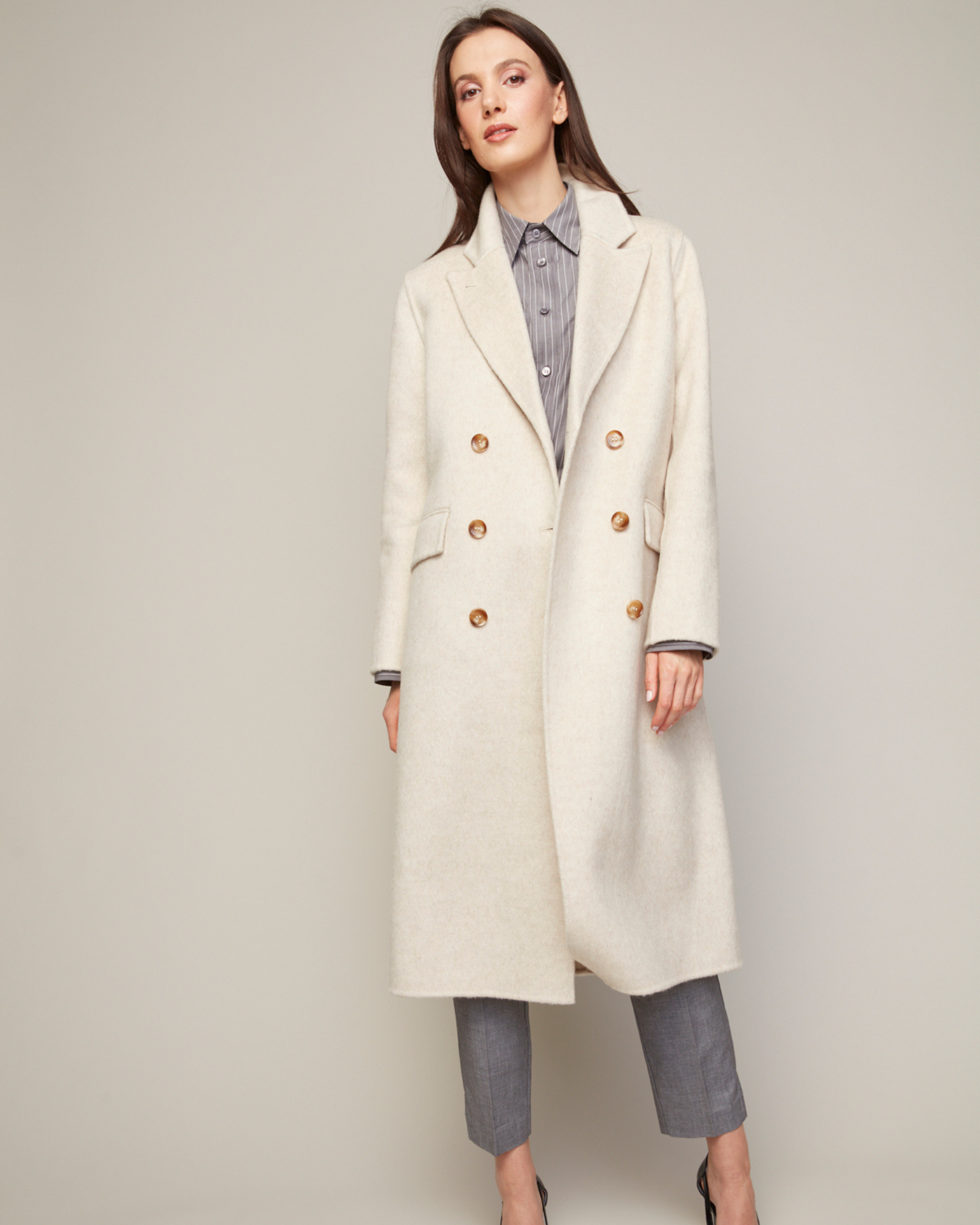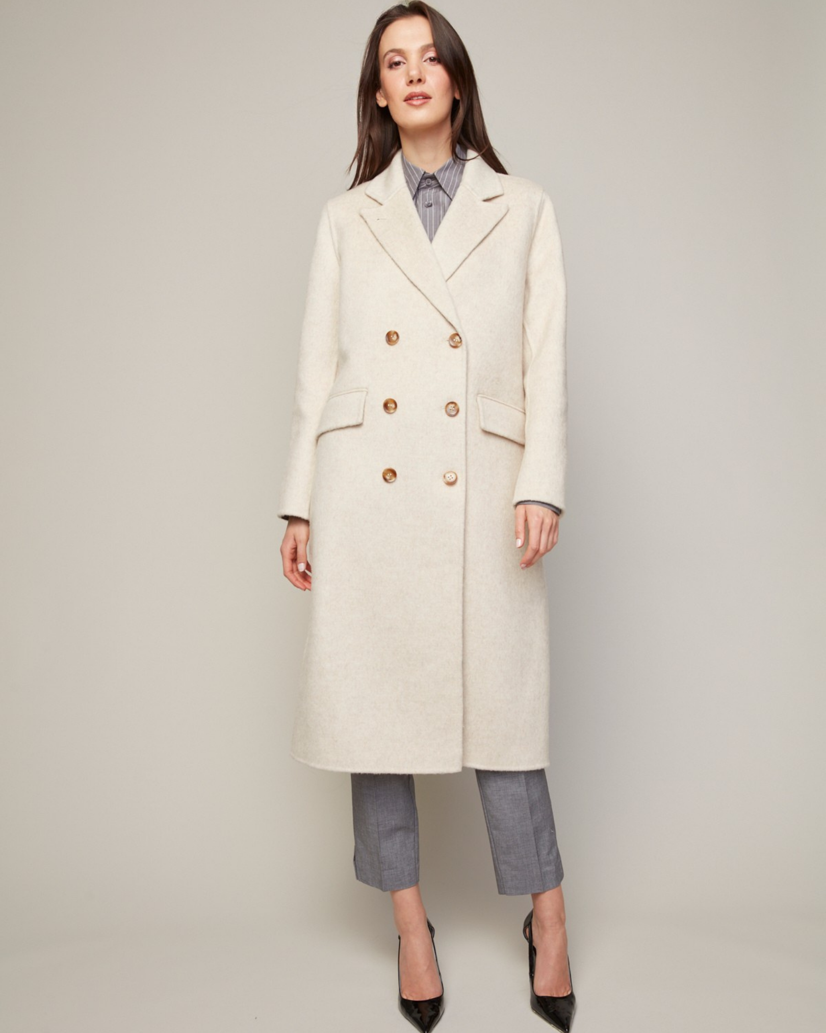 Bennett Double Breasted Double Face Long Wool Blend Coat (Birch)