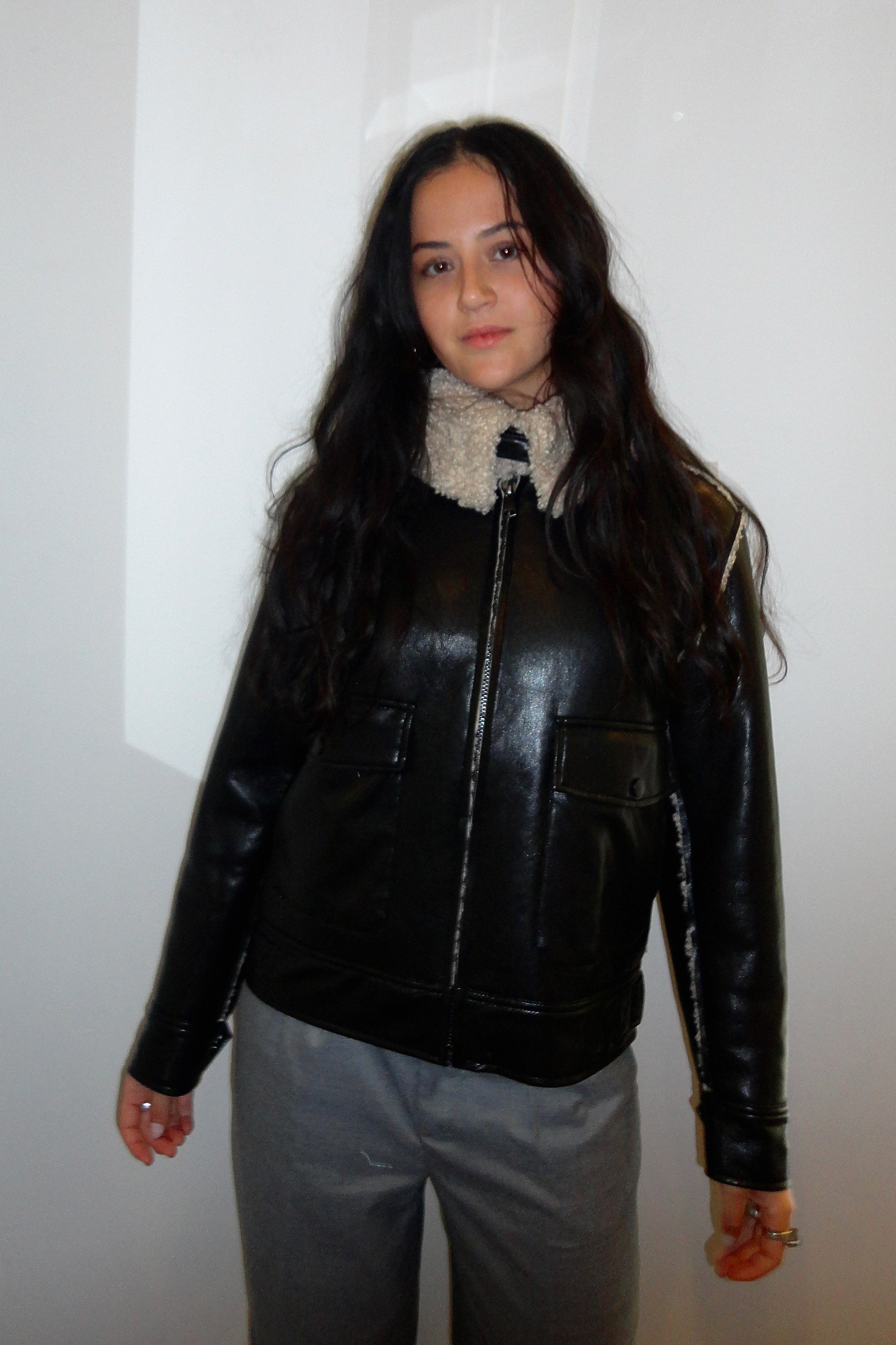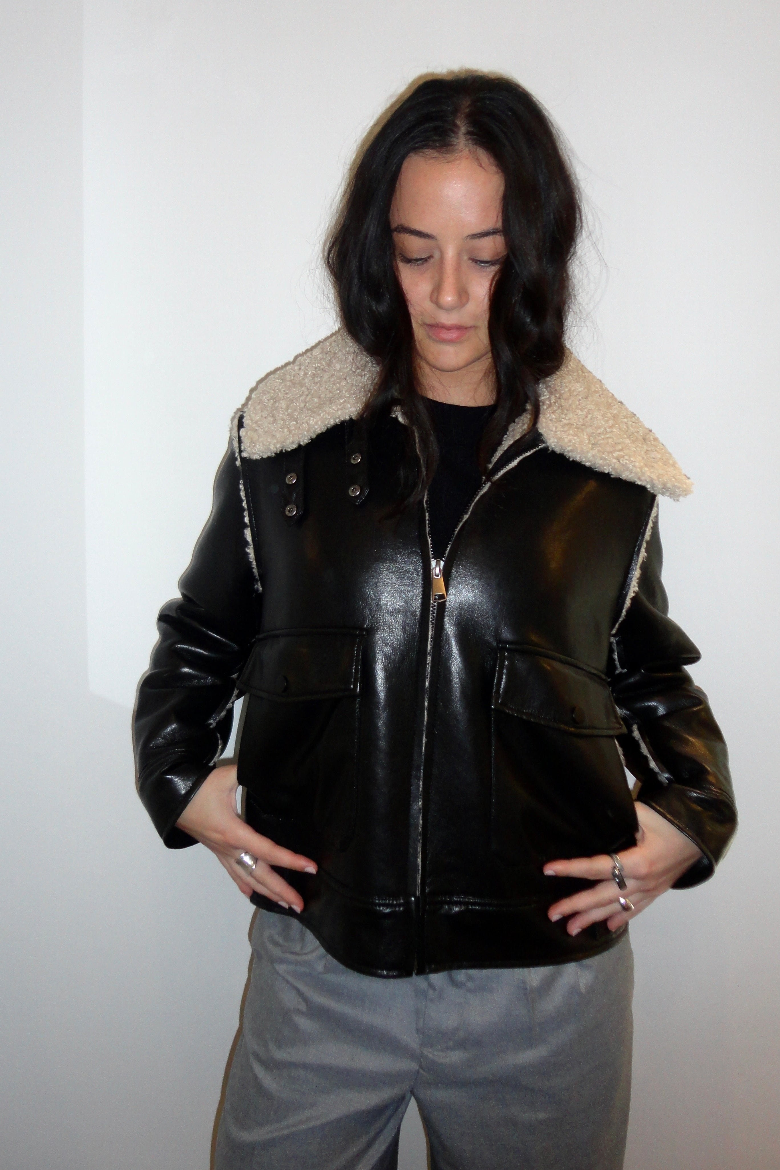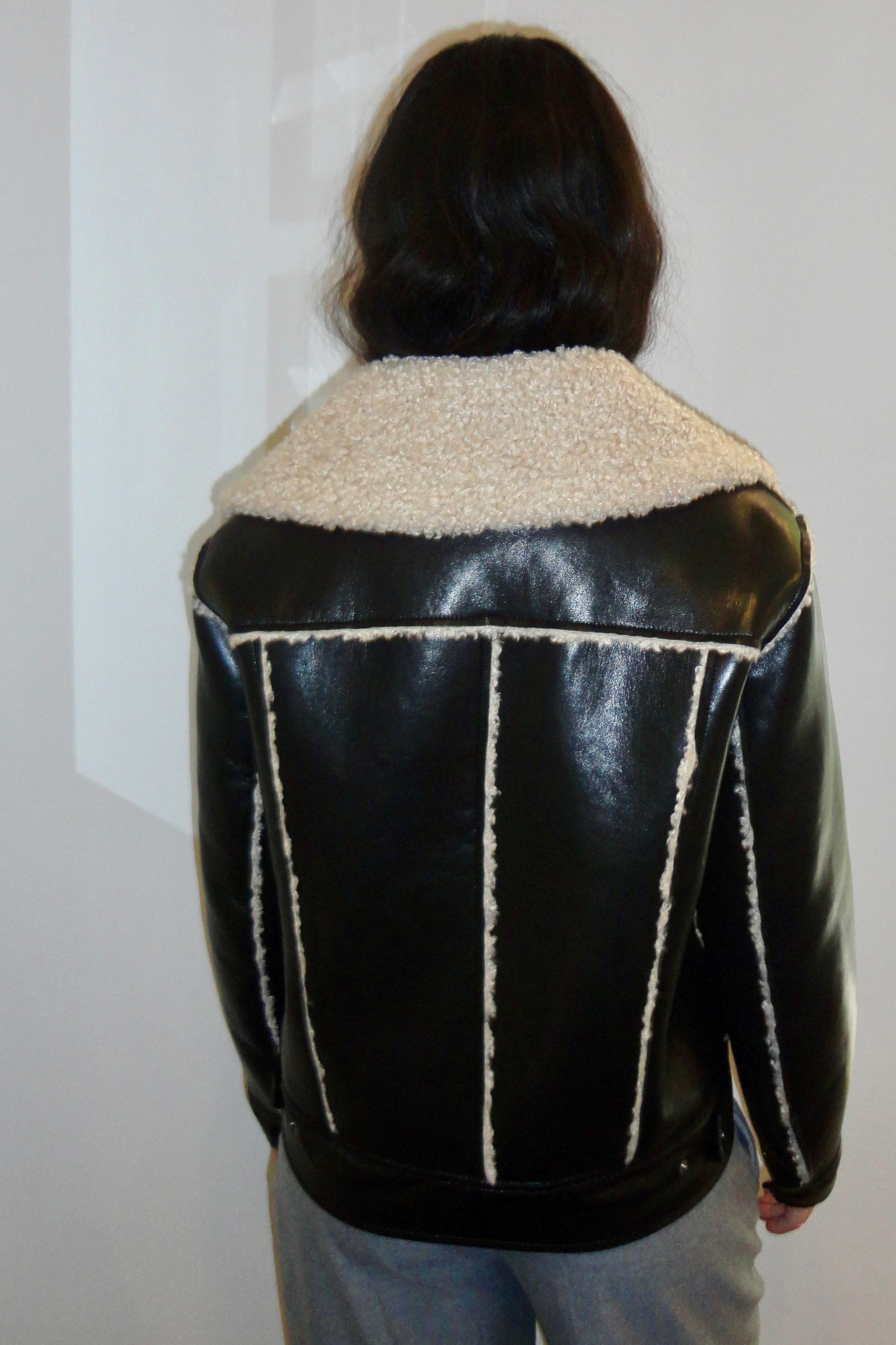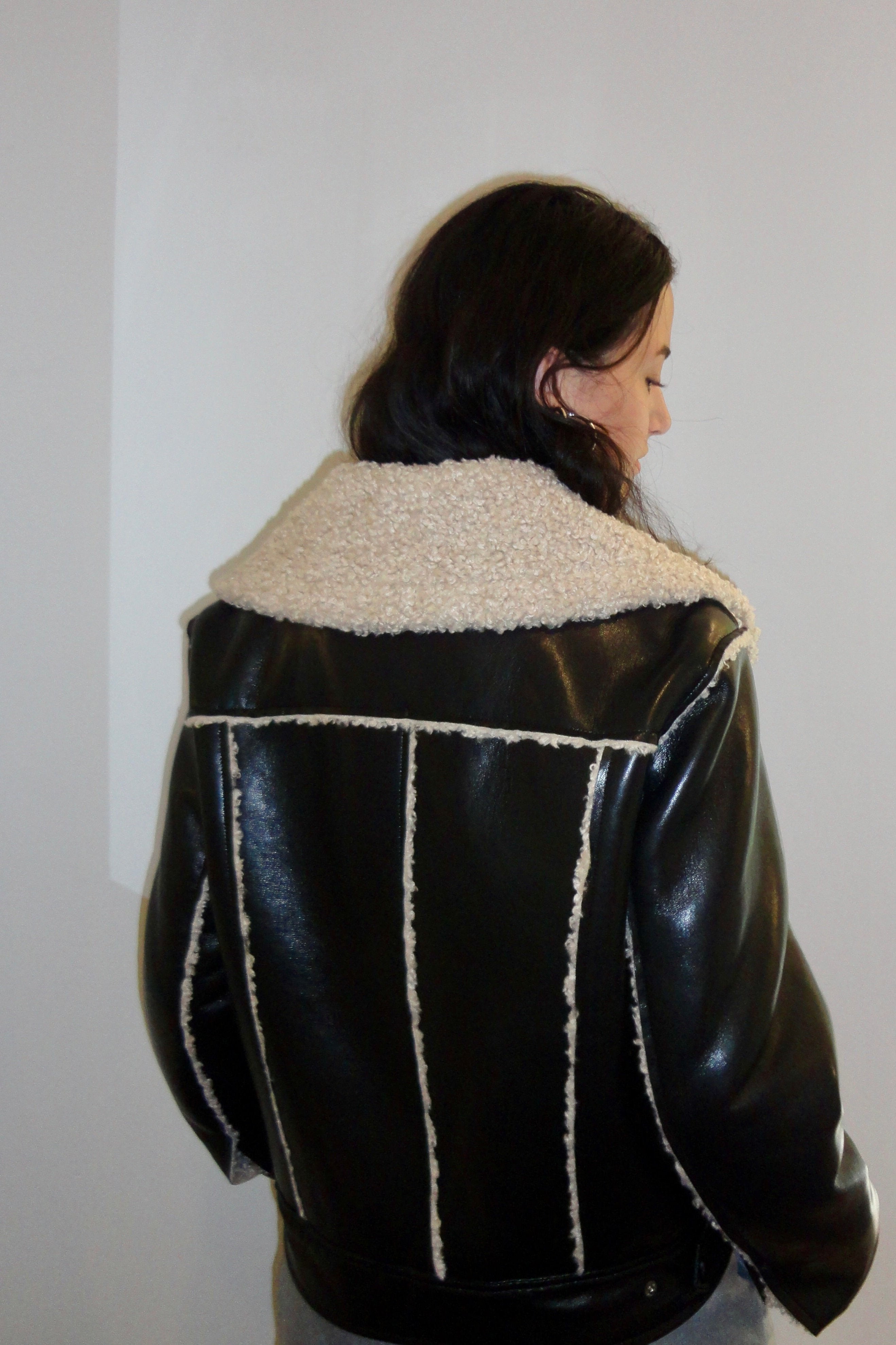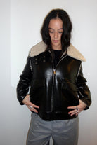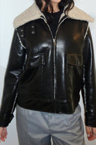 Parker Bonded Vegan Leather Aviator Jacket w/ Collar Snap Closure