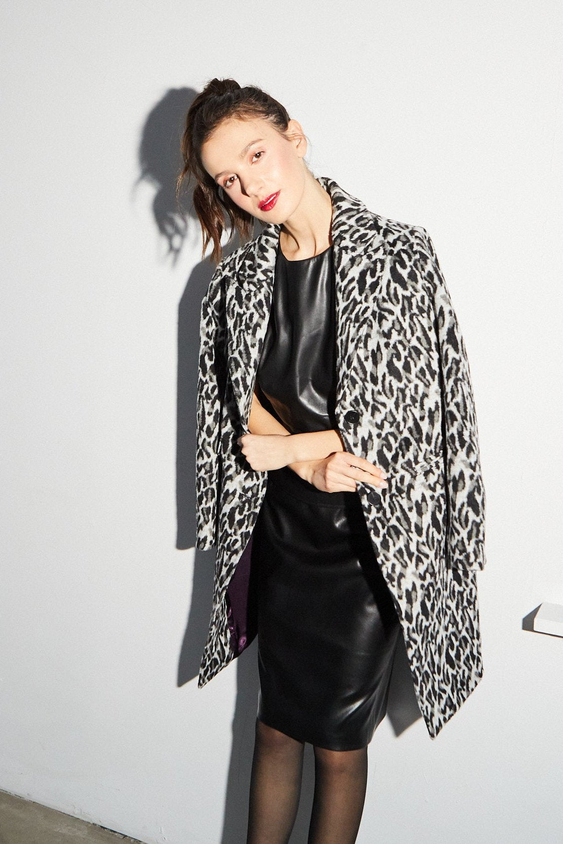Sienna mid Length Leopard Coat w/ Piped Pockets