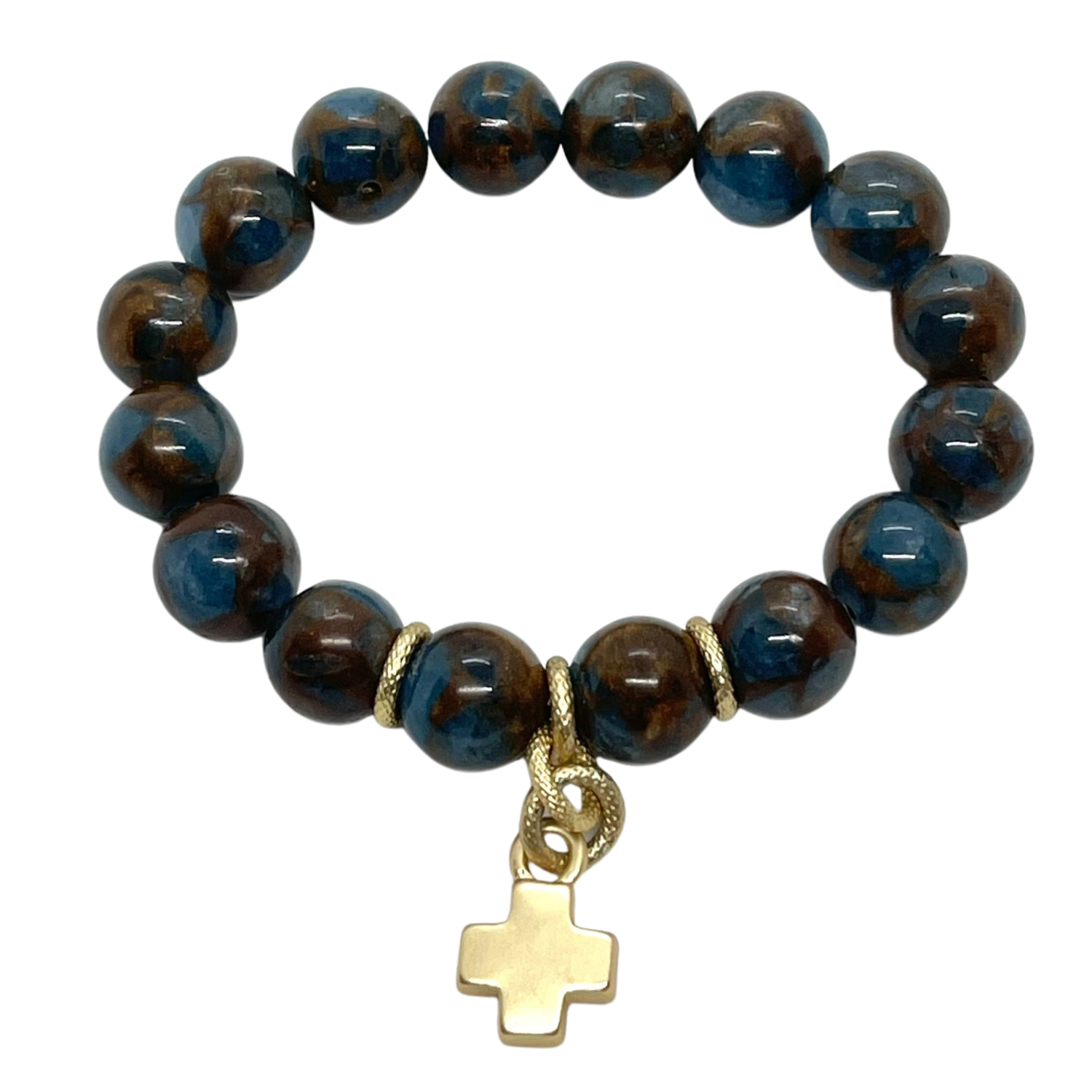 Teal Quartz Stretch Bracelet With Matte Gold Cross