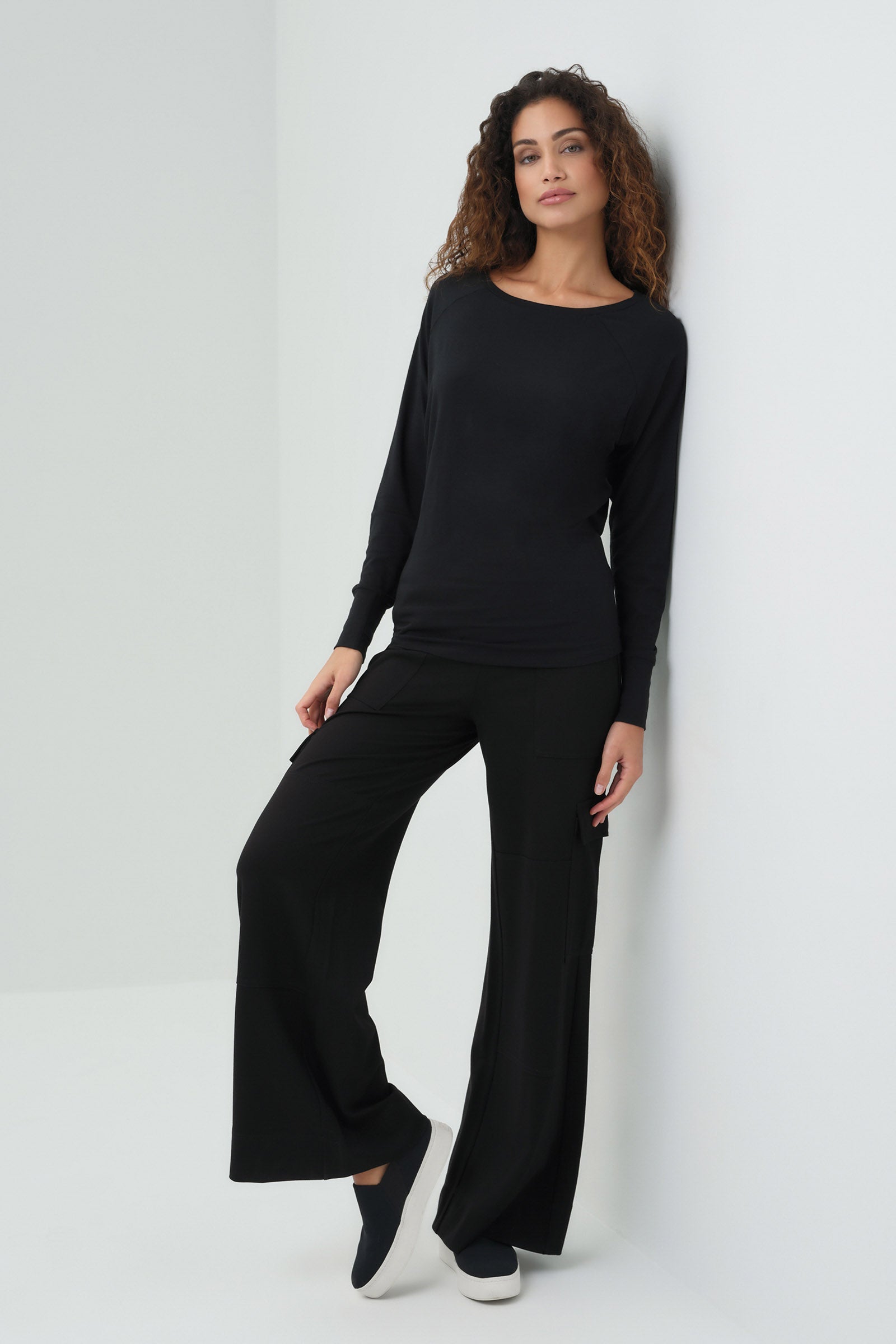 Indulge in the luxurious comfort of the Aurora Raglan Tshirt. Whether you choose to wear it as a sophisticated boatneck or off one shoulder for a touch of edge, the sumptuously soft fabric will provide year-round warmth while keeping you cool and comfortable. Elevate your loungewear game with the Aurora from our new limited edition Weekend Getaway capsule.