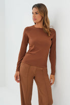 Connie Sweater Knit Baseball Sleeve Shirt in Brunette