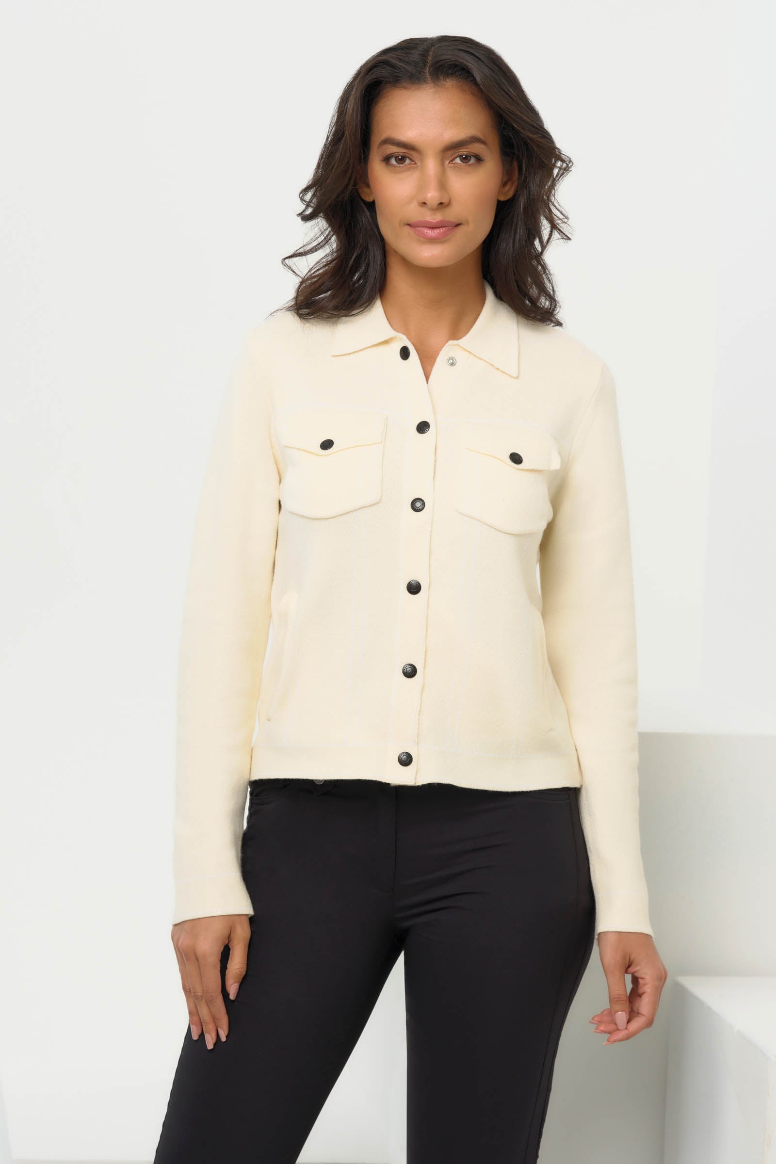 We've infused a feminine twist into the classic Trucker jacket silhouette. Made from a luxurious cashmere blend, Elaine embodies a blend of strength and softness that mirrors the uniqueness of both our brand and customers. Whether layered over your go-to top or worn as a trendy shacket, Elaine is ideal for staying cozy during the seasonal transition.