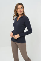 The Georgie Rib Sweater Knit Collared Top is a refined fall essential, made from exceptionally soft ribbed fabric. Its sleek collared detail adds a subtle sophistication, turning this comfortable basic into a polished layer perfect for the season.