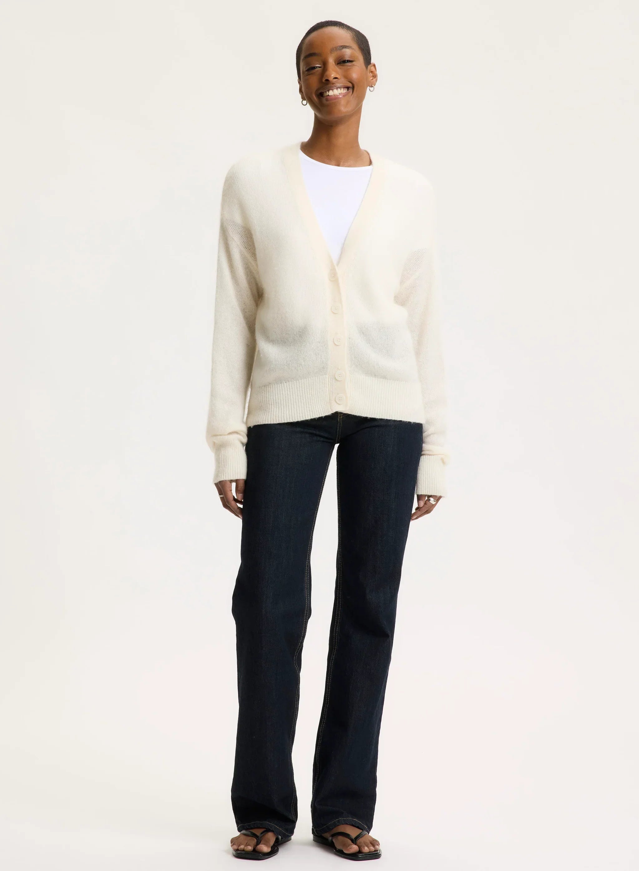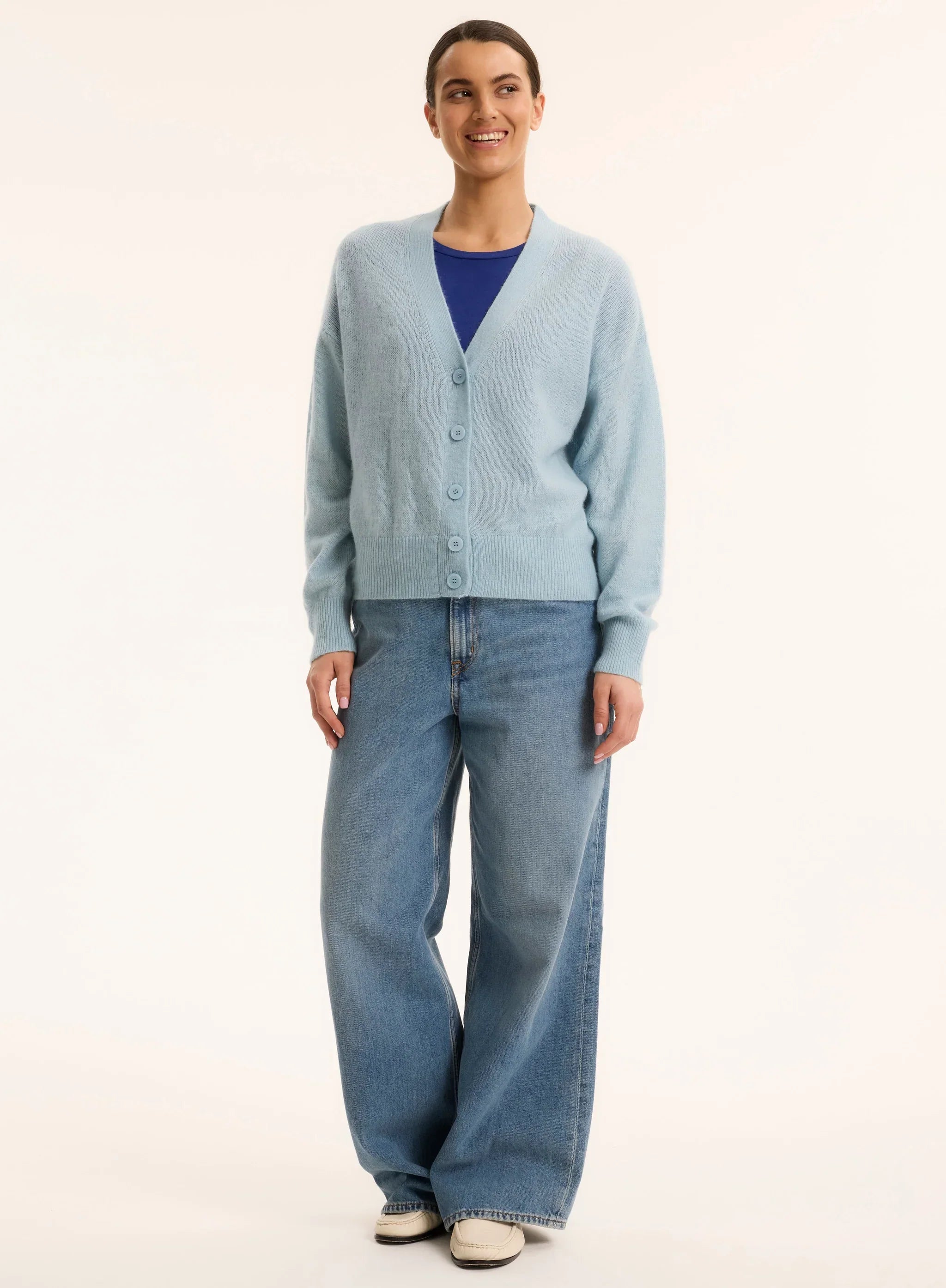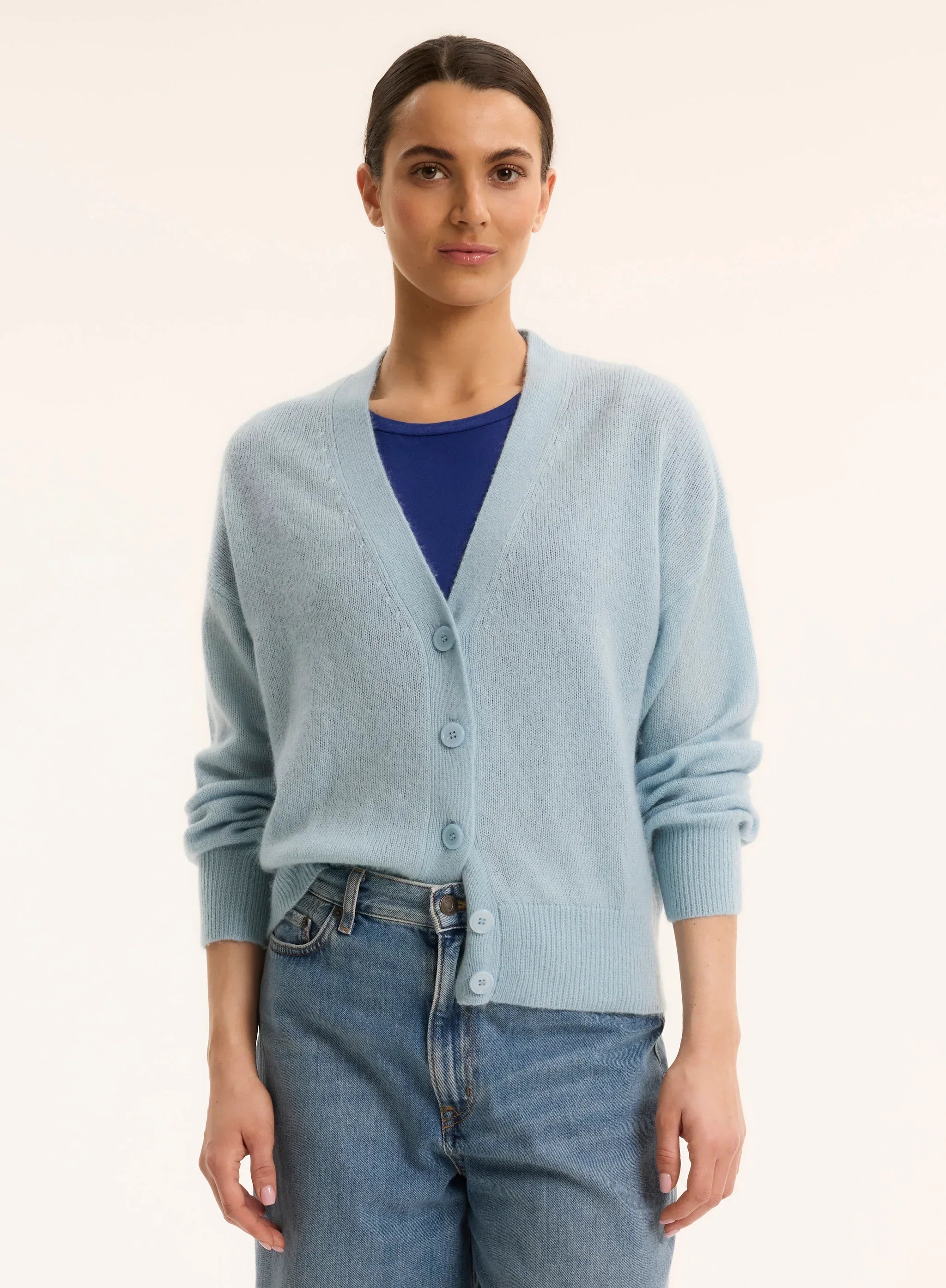 This ultra soft cardigan v-neck cardigan is the perfect piece to layer over your soft touch or stretch linen pieces. Your lightest layer.