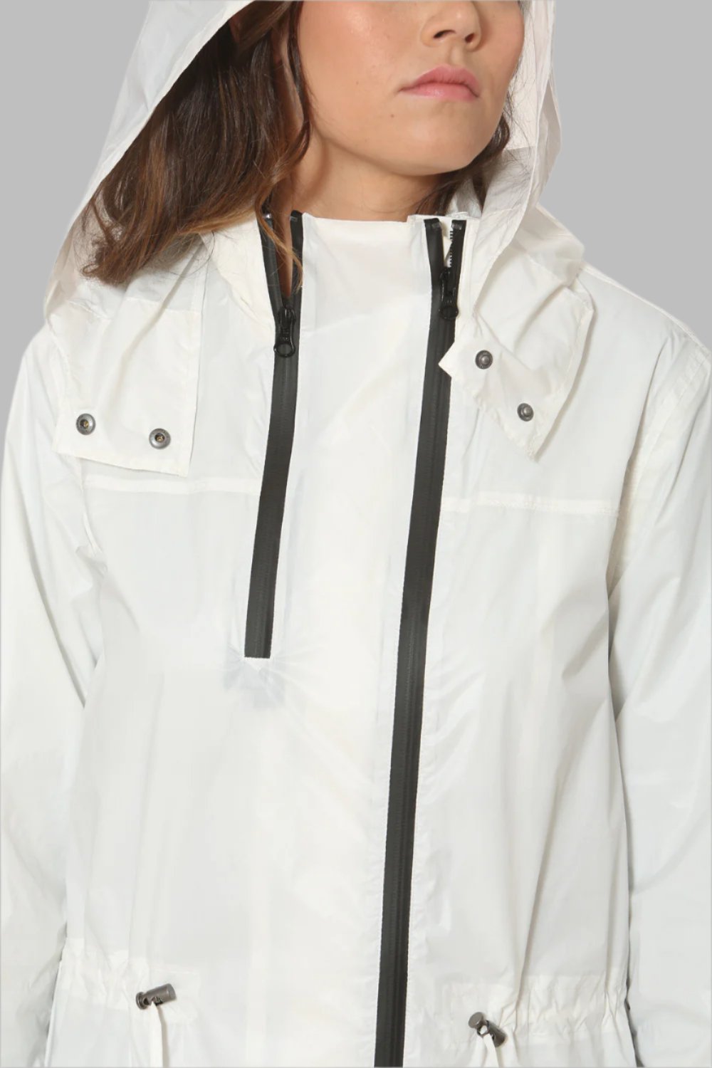 style Sabrina - A rain coat that remains 100 percent water proof in the most harsh weather conditions. It is suitable for traveling and can be easily packed into your bag. A windbreaker feeling fabric. Lined.