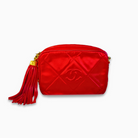 Chanel Red Satin Camera Bag Vintage with 24k Gold Plated Tassle