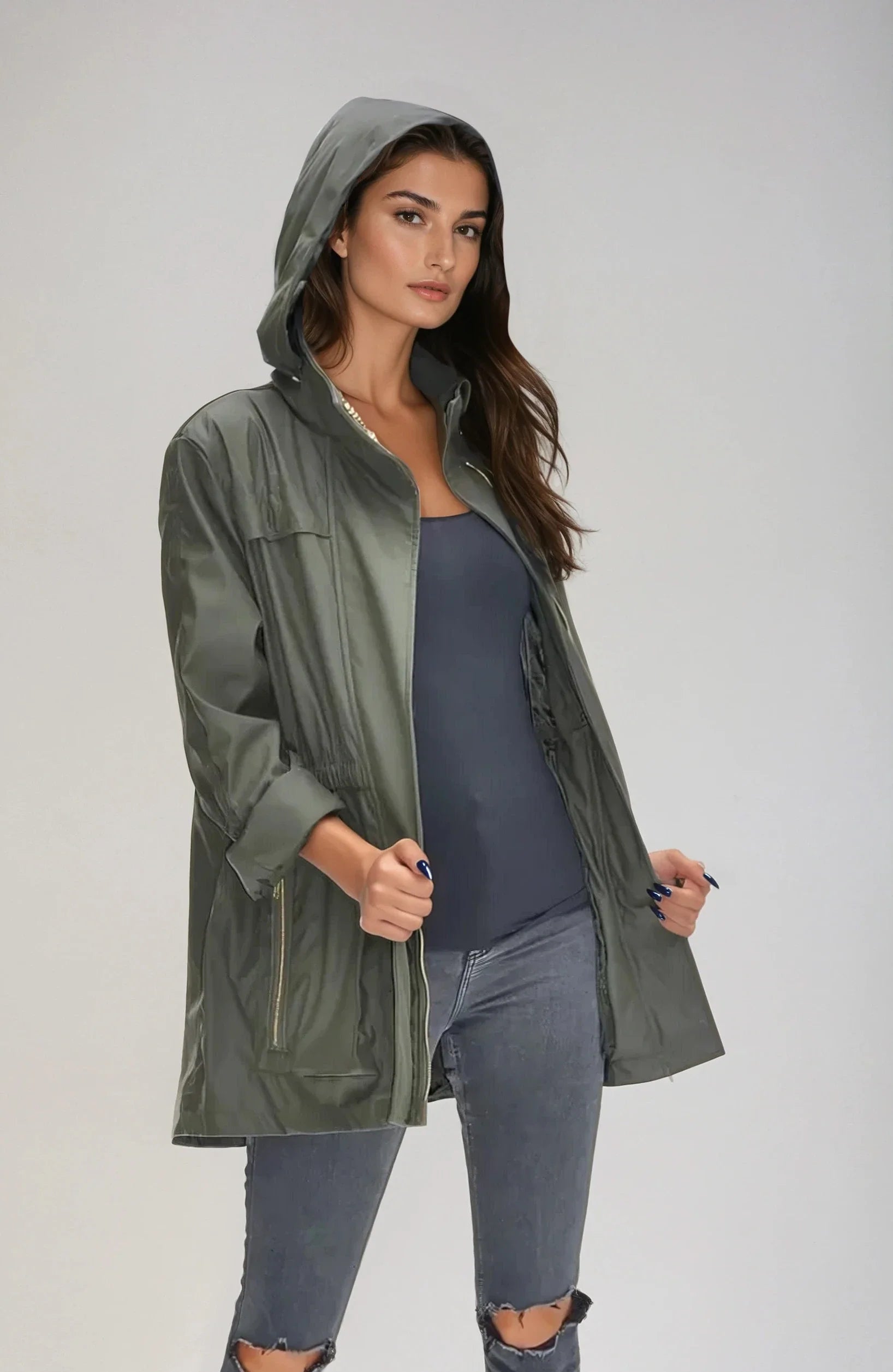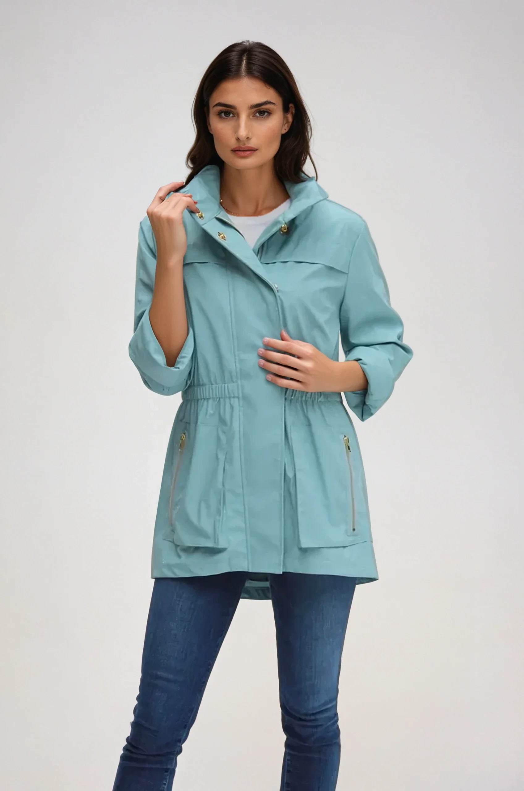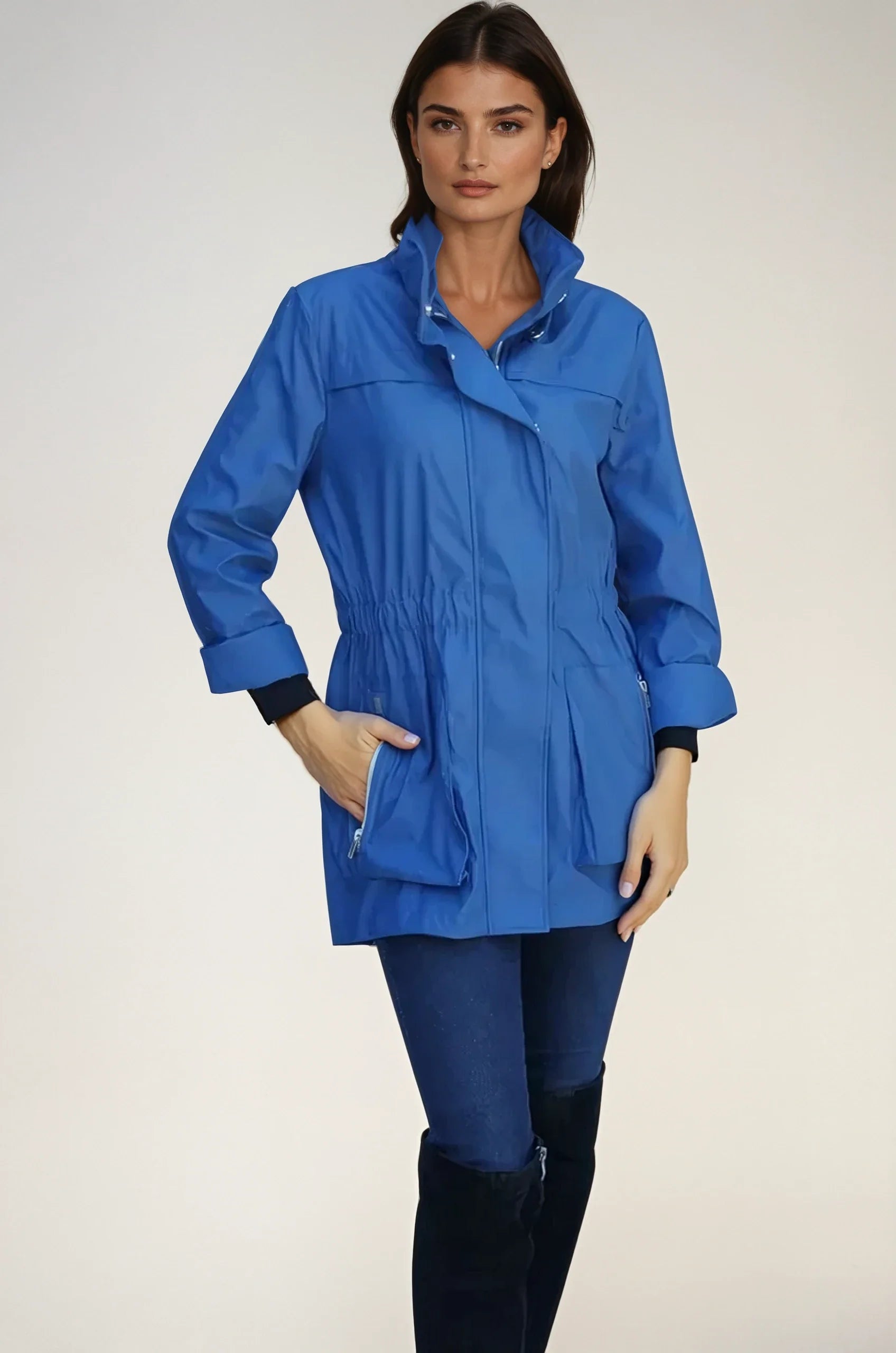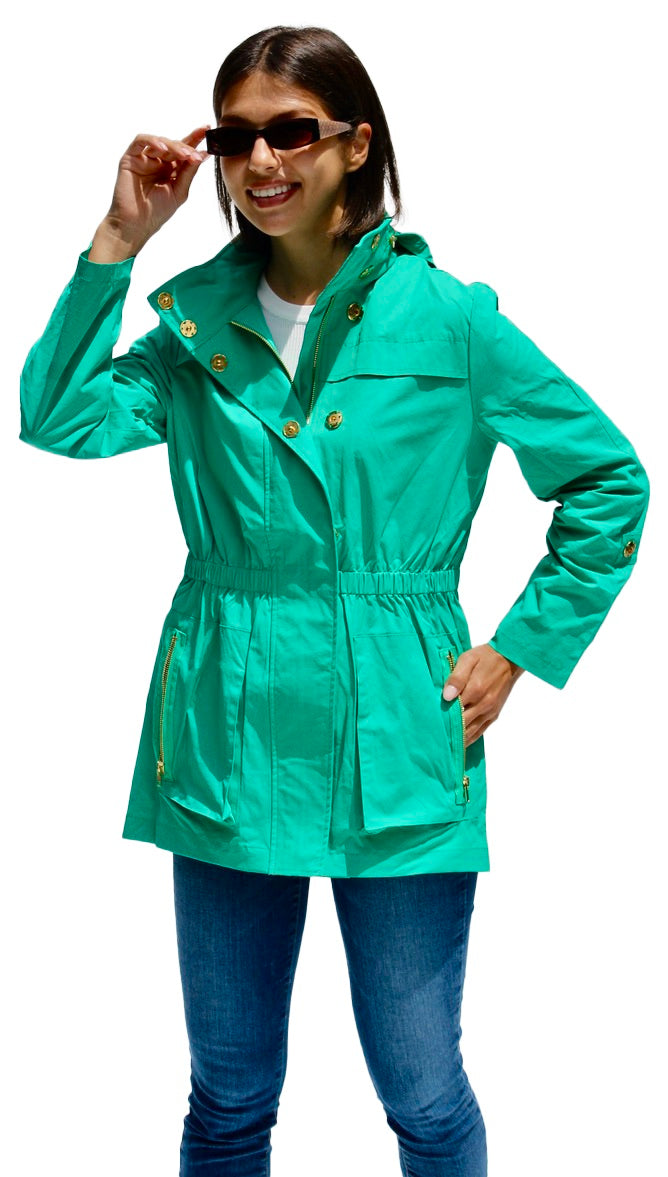 Style ANNA - new fabric developed by Ciao Milano. This soft, durable, flowing fabric is not only 100% waterproof but also extremely rich-looking, making it look like a million dollars. It is made of 100% polyester and has a shinier appearance than the Tess fabric. It shares the same style, hardware, specs, and fit with a zip-in pouch hood as the famous TESS style.
