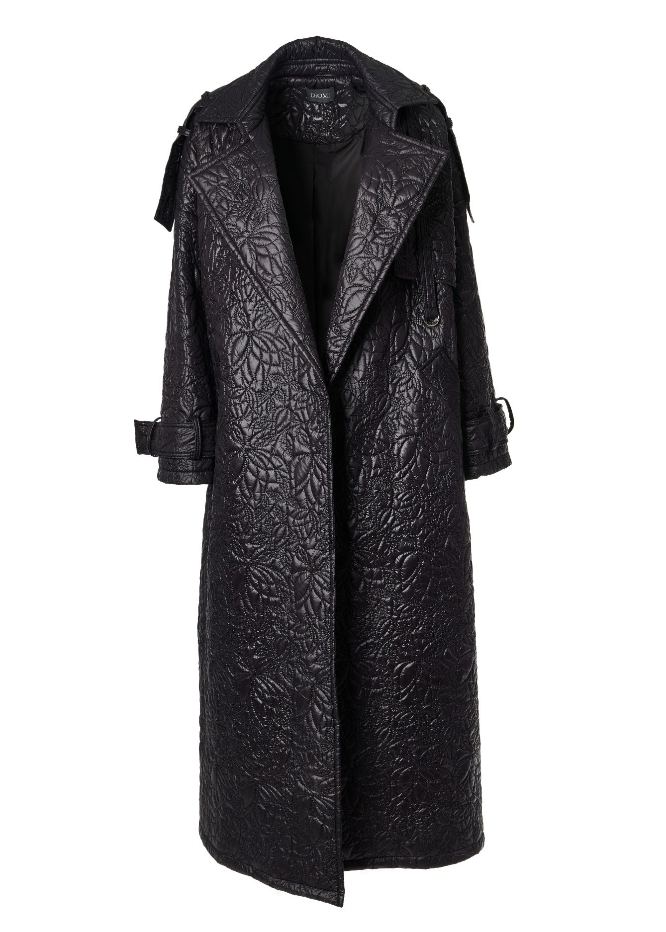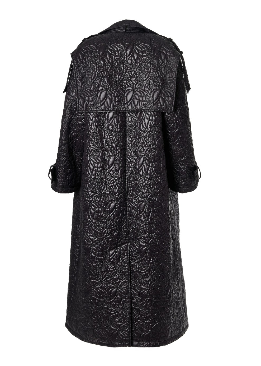 EMBROIDERED NYLON OVERSIZED TRENCH COAT IN BLACK