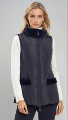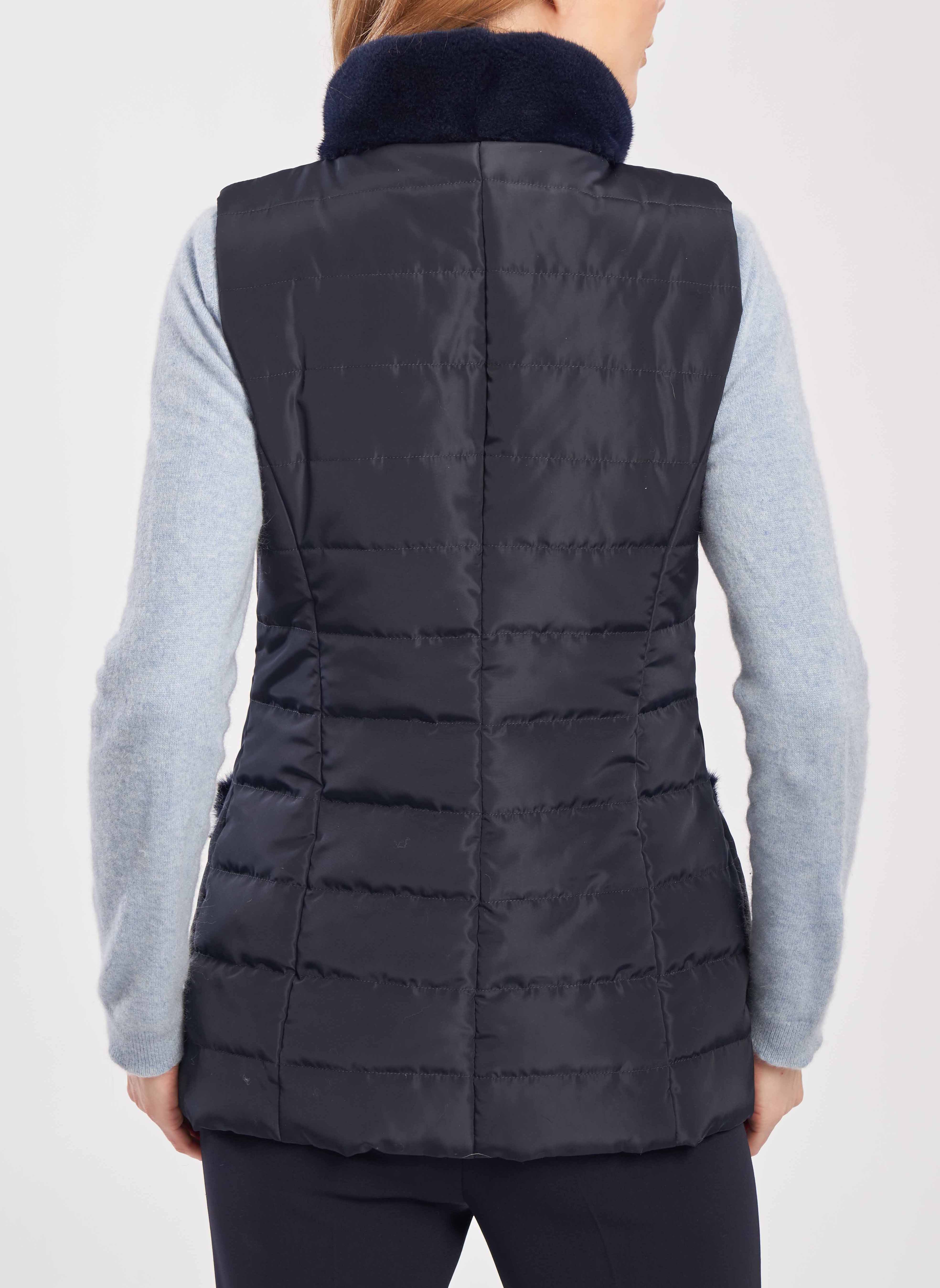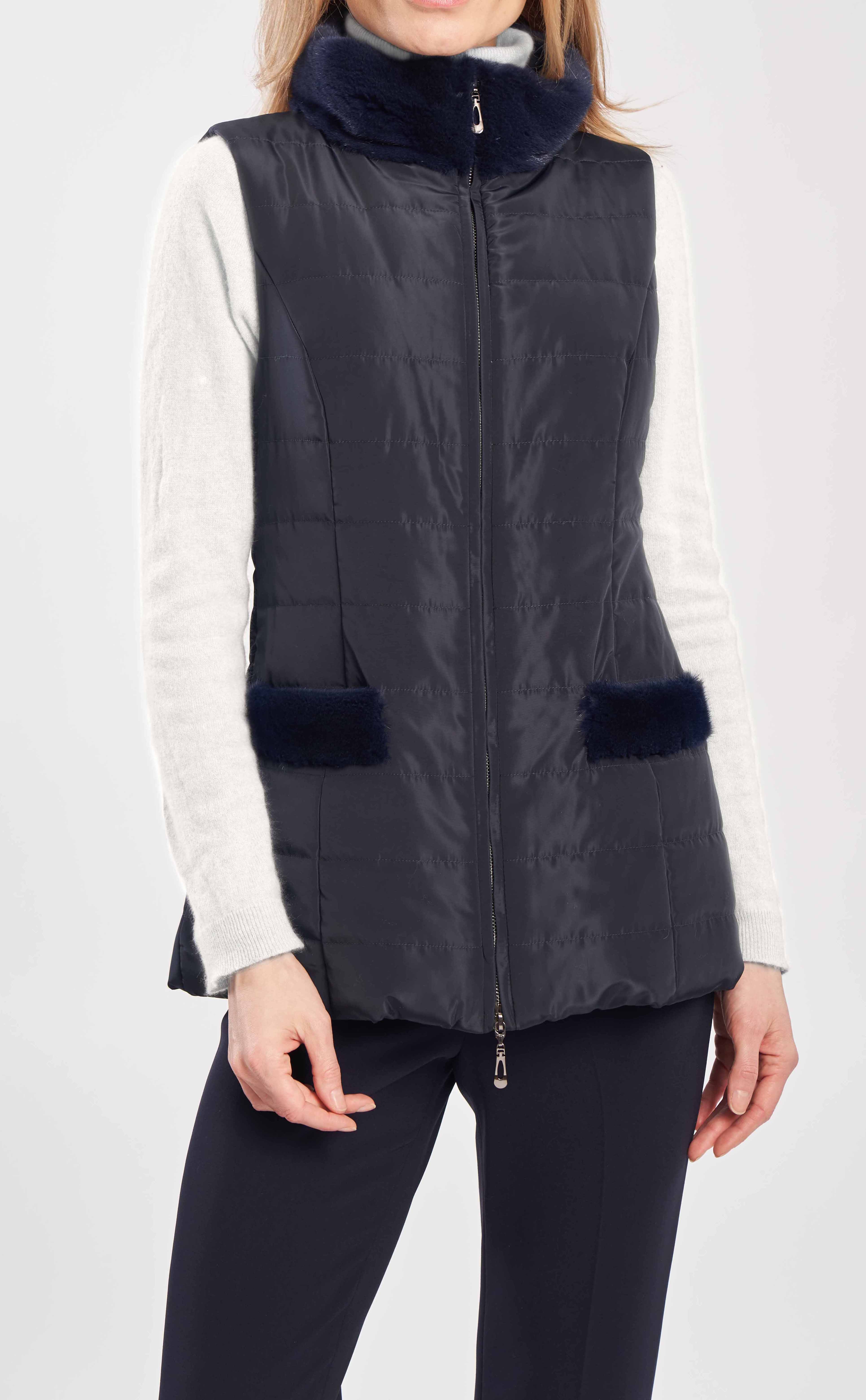Nylon Vest With Mink Collar & Pocket Trim In Navy
