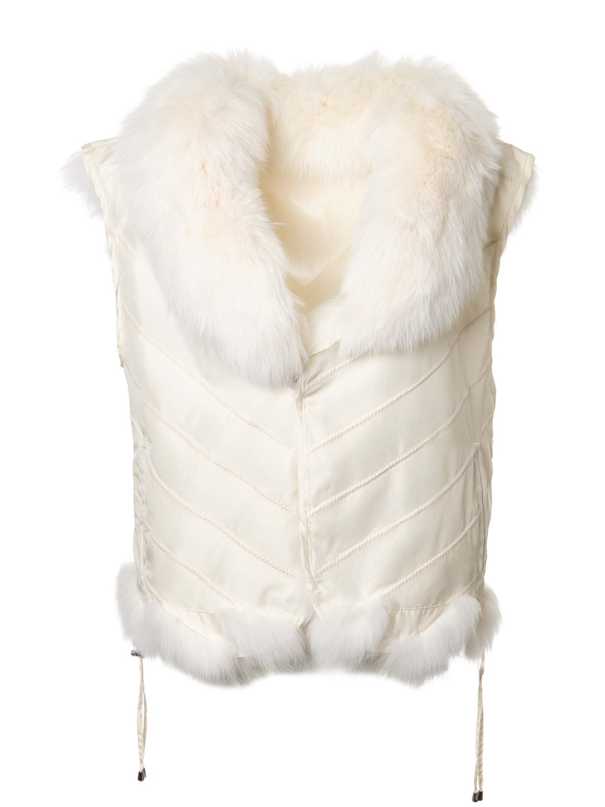 The silk reversible chevron fox short vest features embroidered details and a detachable lapel collar. Its featherweight construction makes it exceptionally lightweight and comfortable.
