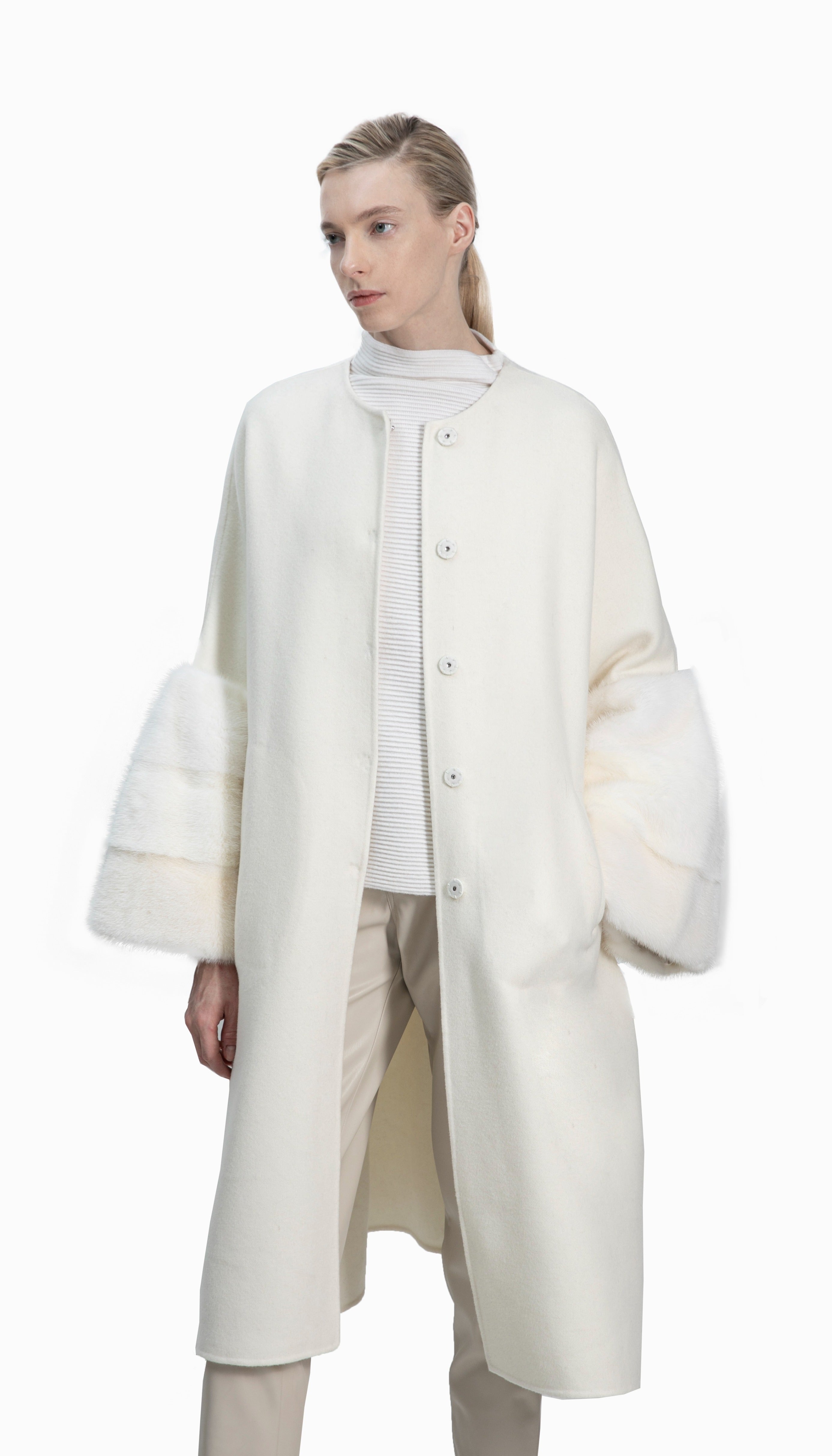 CASHMERE WOOL COAT WITH MINK SLEEVES