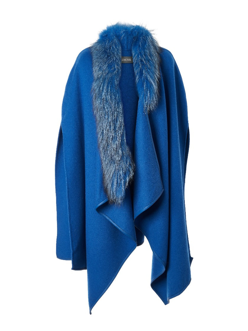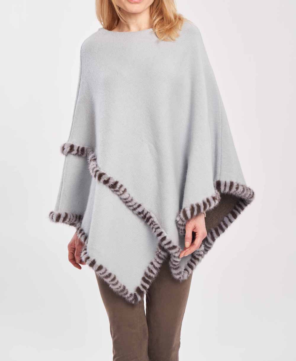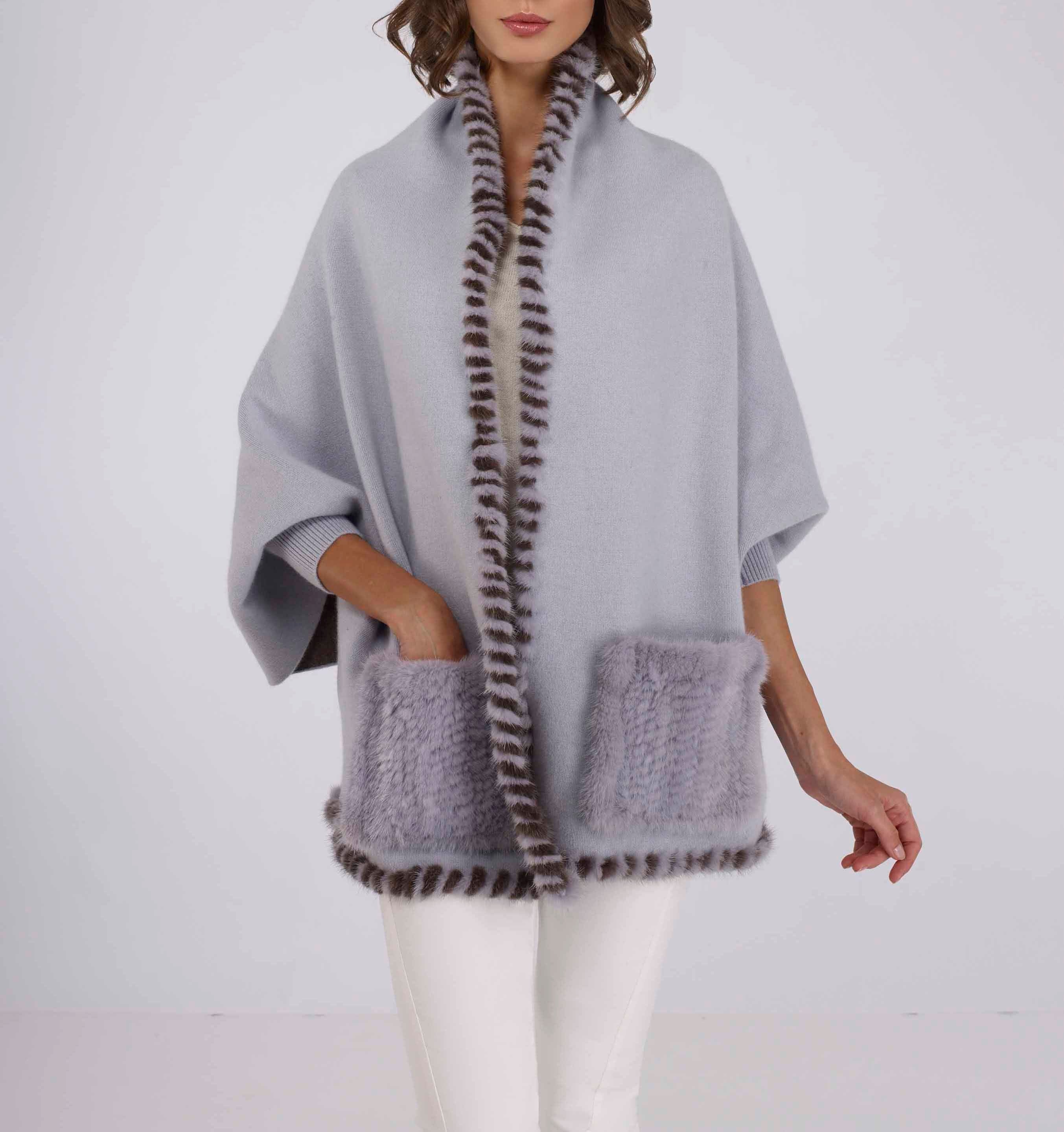 Woven Wrap With Cuff And Mink Trimming In Baby Blue