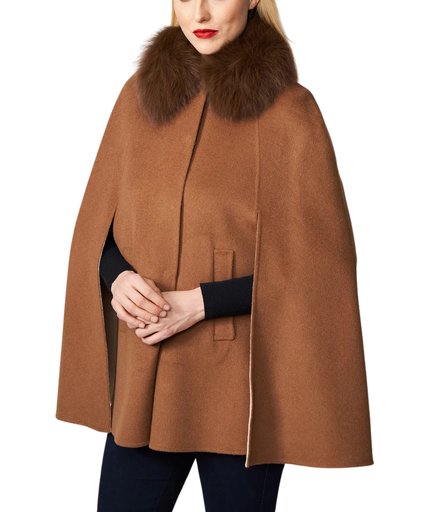 Woven Plaid Wrap With Cuff And Mink Trimming In Brown Plaid