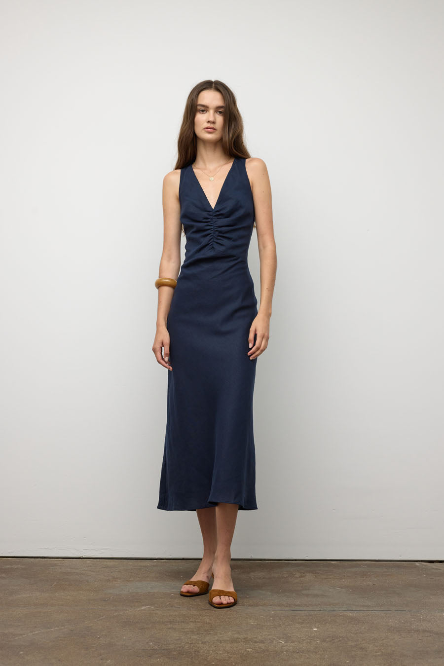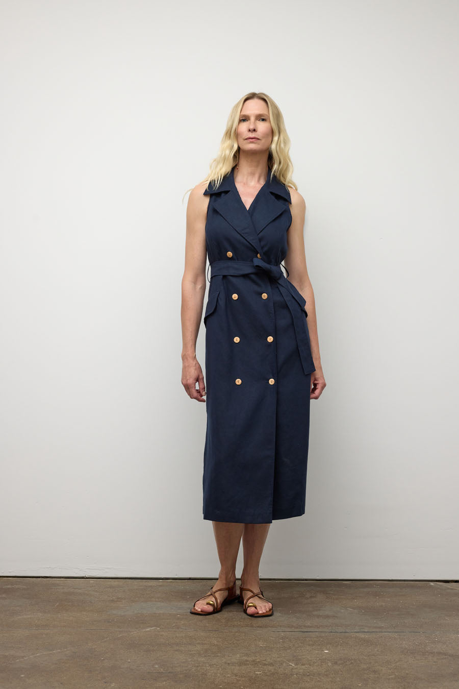 Stretch Linen 3/4 Sleeve Tunic Dress