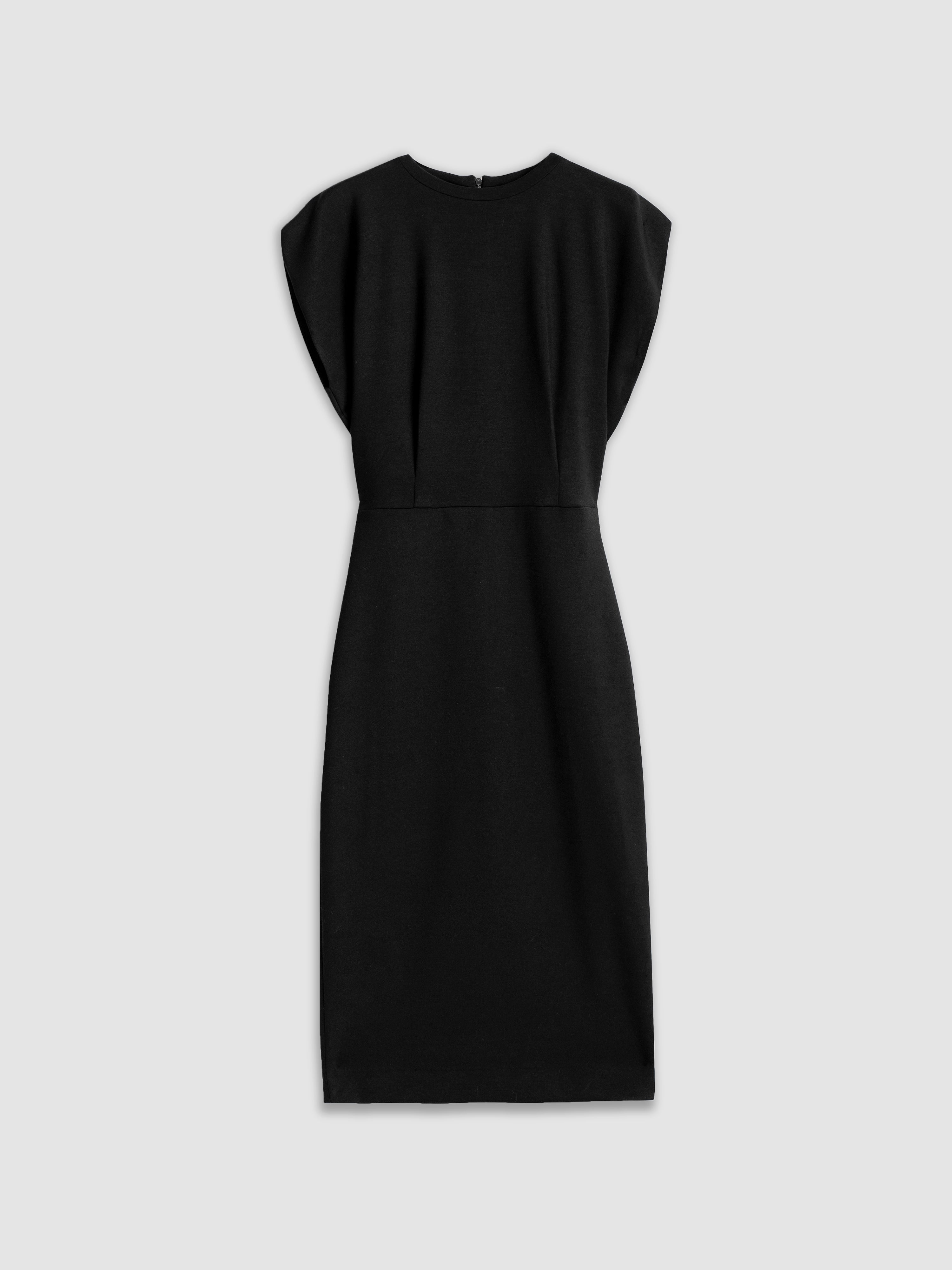 Cap sleeve knee length dress in Double Face Jersey, fitted