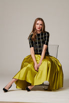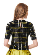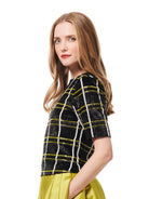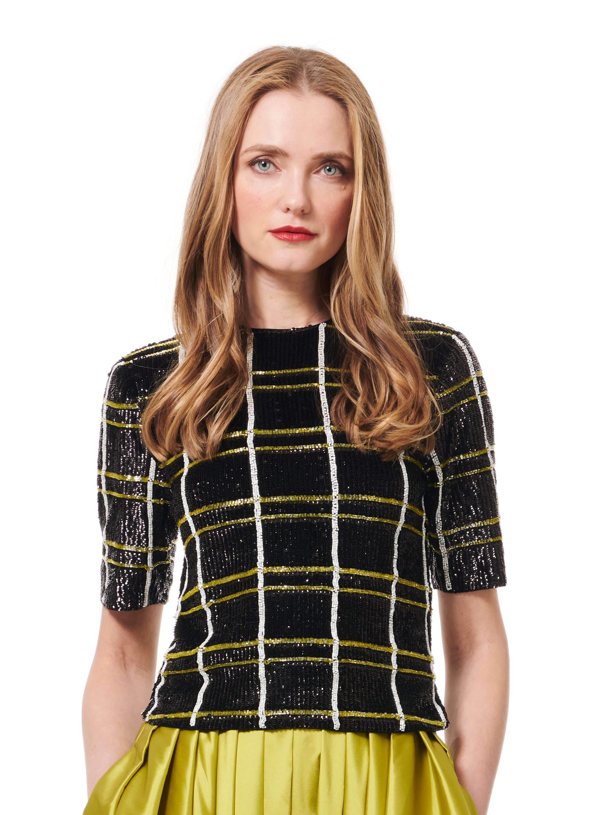 BLACK CITRINE PLAID BEADED ELBOW TEE