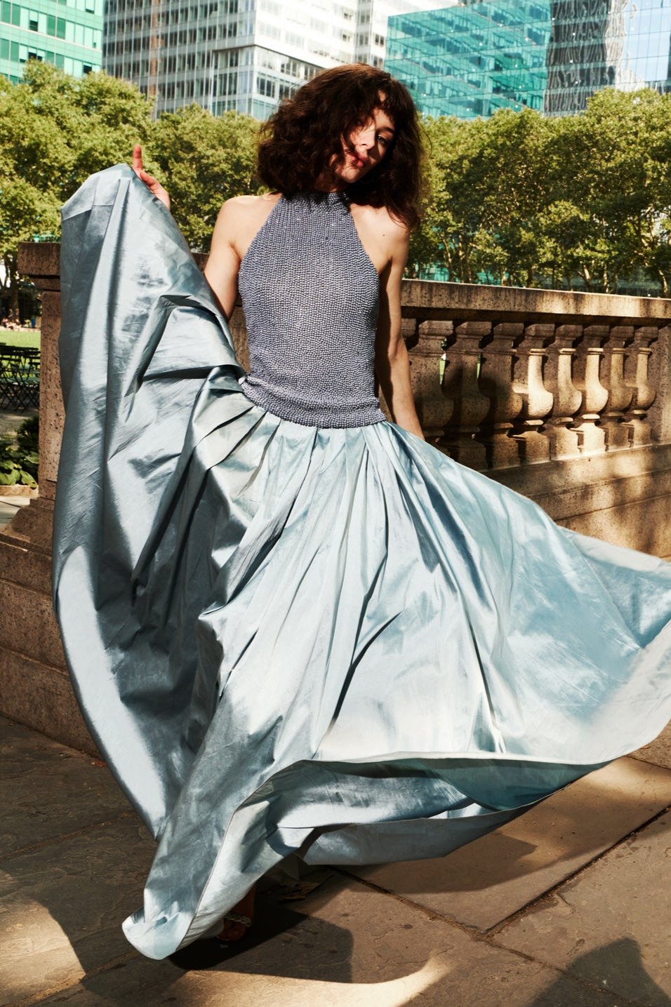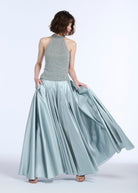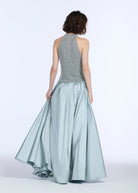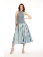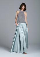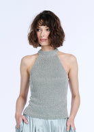 LIGHT BLUE PEARL ENCRUSTED SLEEVELESS MOCK NECK