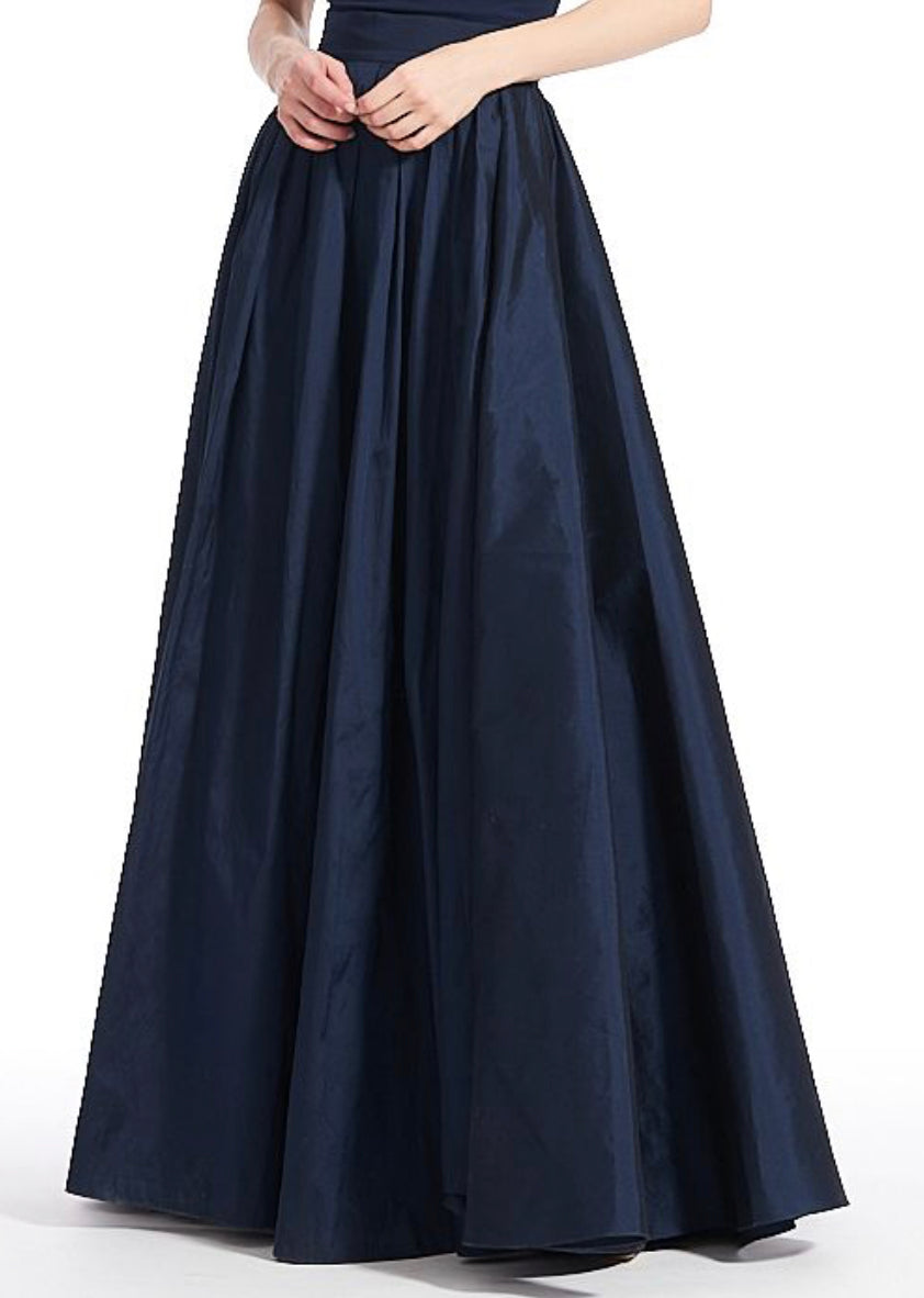 Dramatic ball skirt in gorgeous taffeta take our tops to the next level of glam! Perfect color match for the monochromatic look or mix and match. Side seam pockets. Try it with your favorite white tee and flats for a more casual vibe.