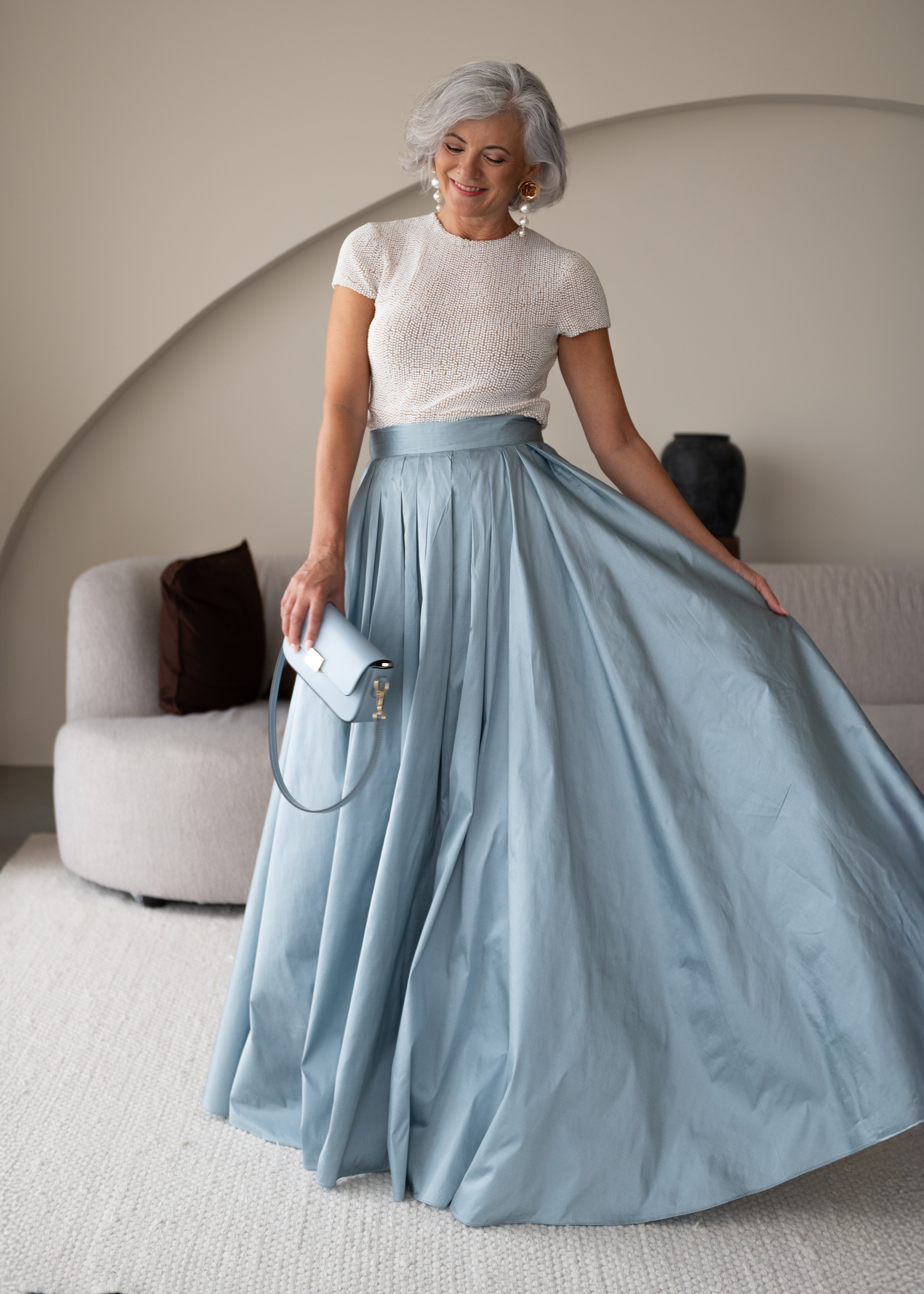 Your favorite short sleeve tee is encrusted in tiny pearls. Wear with our taffeta skirts or to a special event or a pair of jeans for a fancy brunch or dinner out. Makes for a really fun bridal outfit for your rehearsal dinner or engagement party. Short Sleeve Stretch Top Encrusted with Pearls. Hand Made In India. XS-XL.