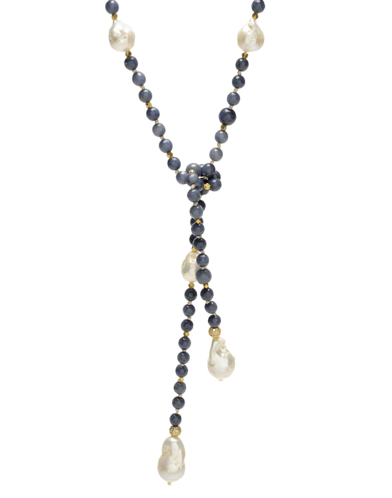 Alice Lariat - blue agate/white