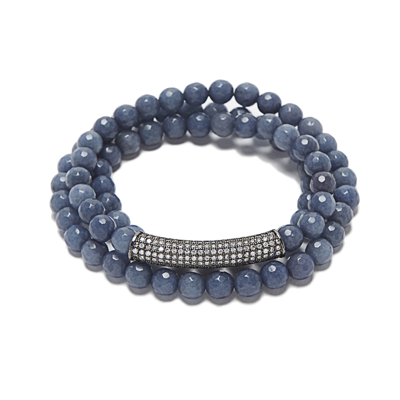 Blue Agate oxidized silver tube with cz crystals