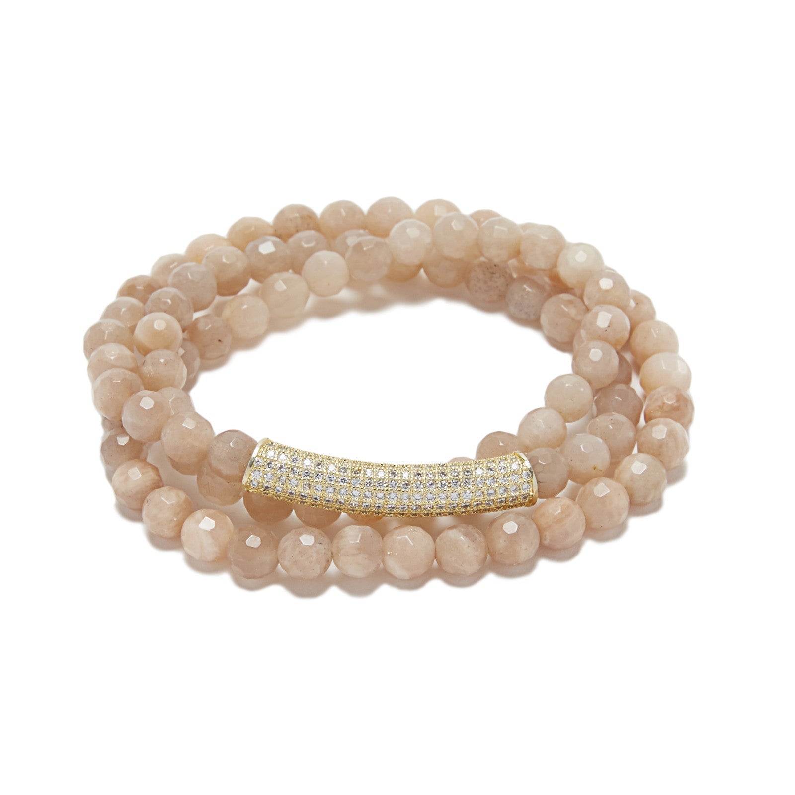 This bracelet is made on a very sturdy elastic cord and it stetches to wrap three times around your wrist.