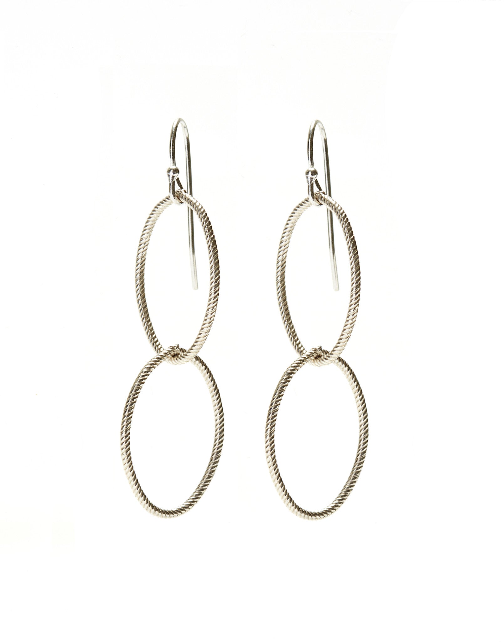 Two twisted ovals in sterling silver. Drop length 1 3/4"