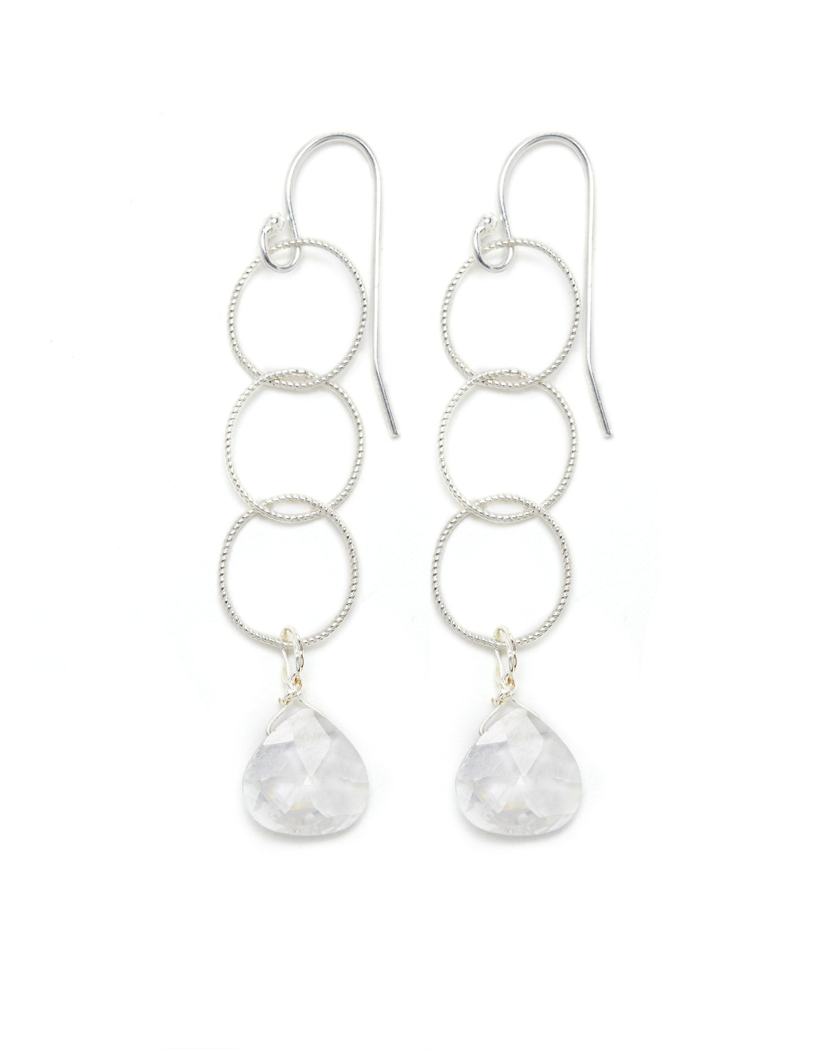 Three fine twisted sterling silver circles with a labradorite drop. Total drop 2".