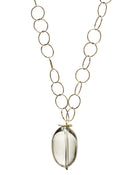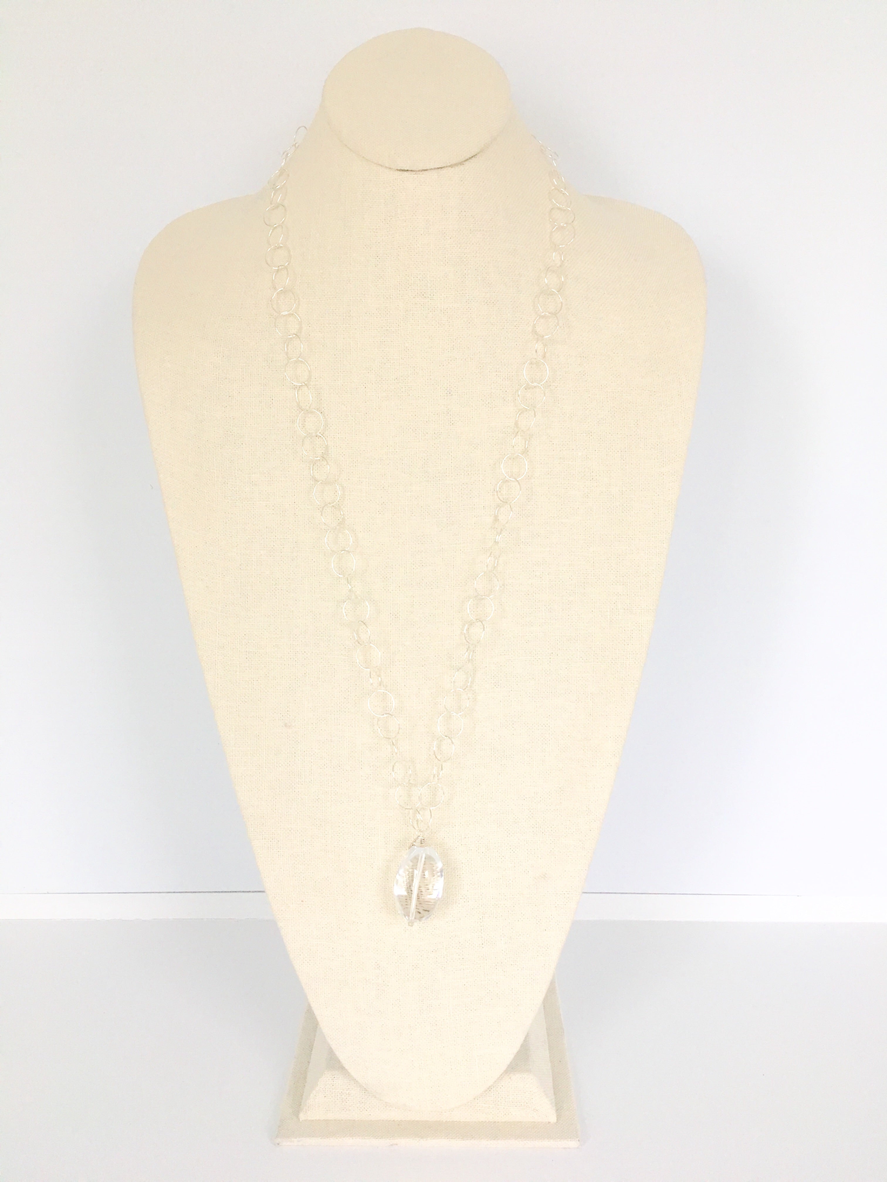Large clear crystal of the best quality on a sterling silver chain. Can be worn long or short.
