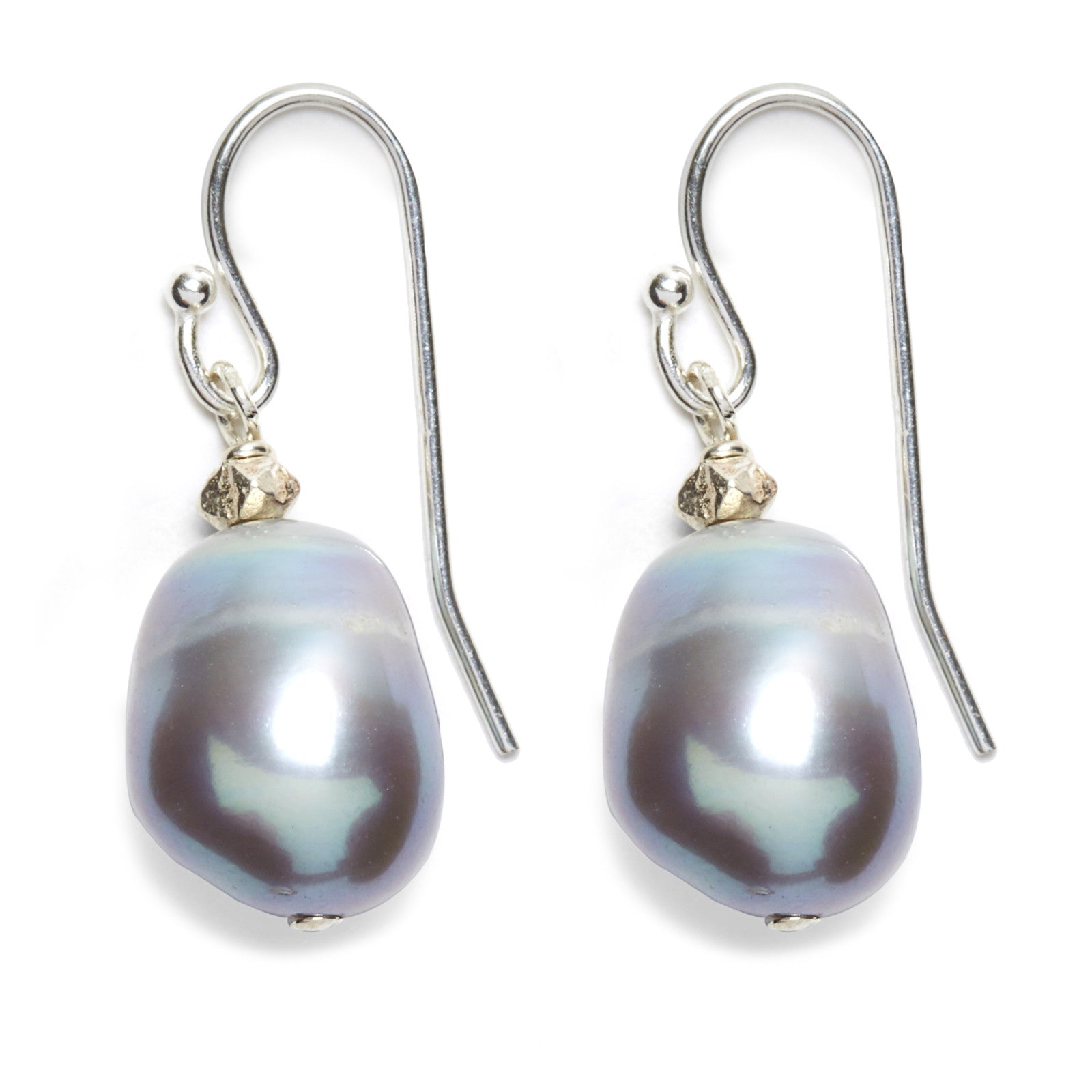 Sterling silver earwire grey pearl. Pearl size approximately 1/3" x 1/2".