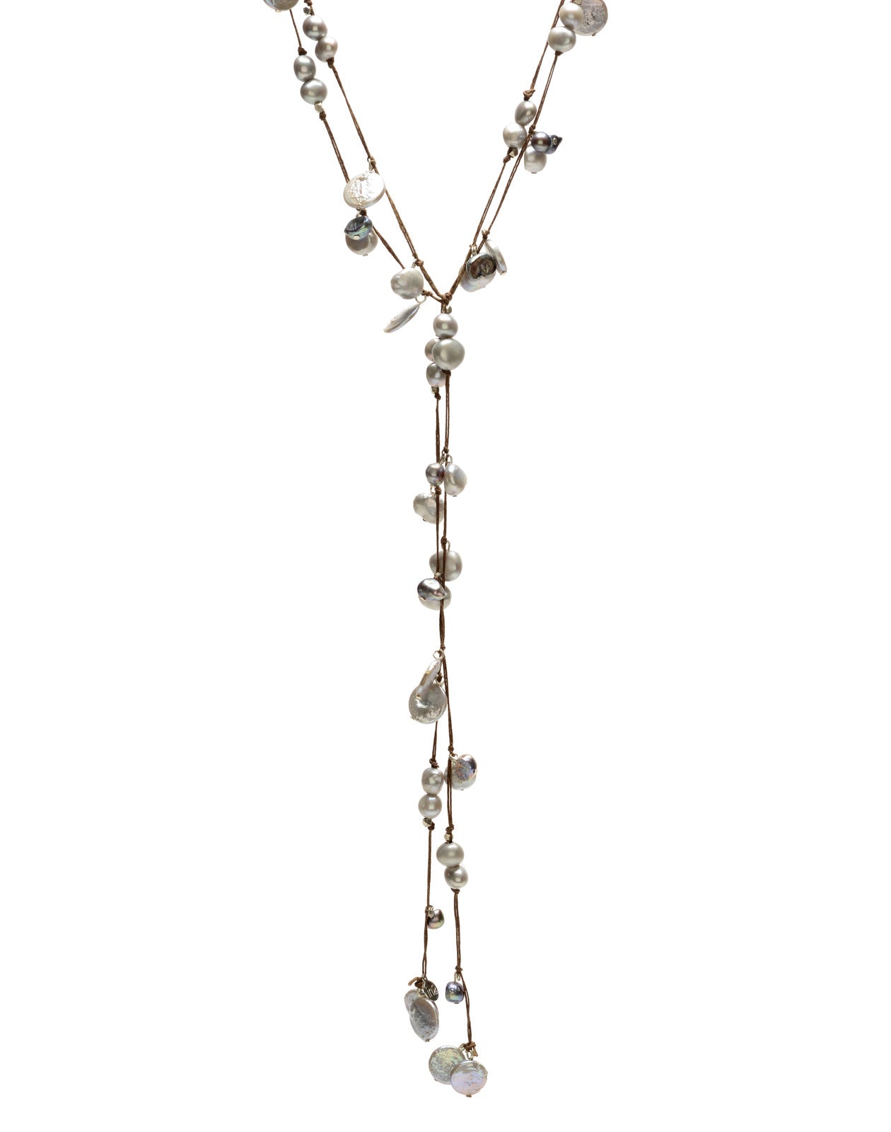 Freshwater grey coin and round pearls Strung on brown Irish waxed linen