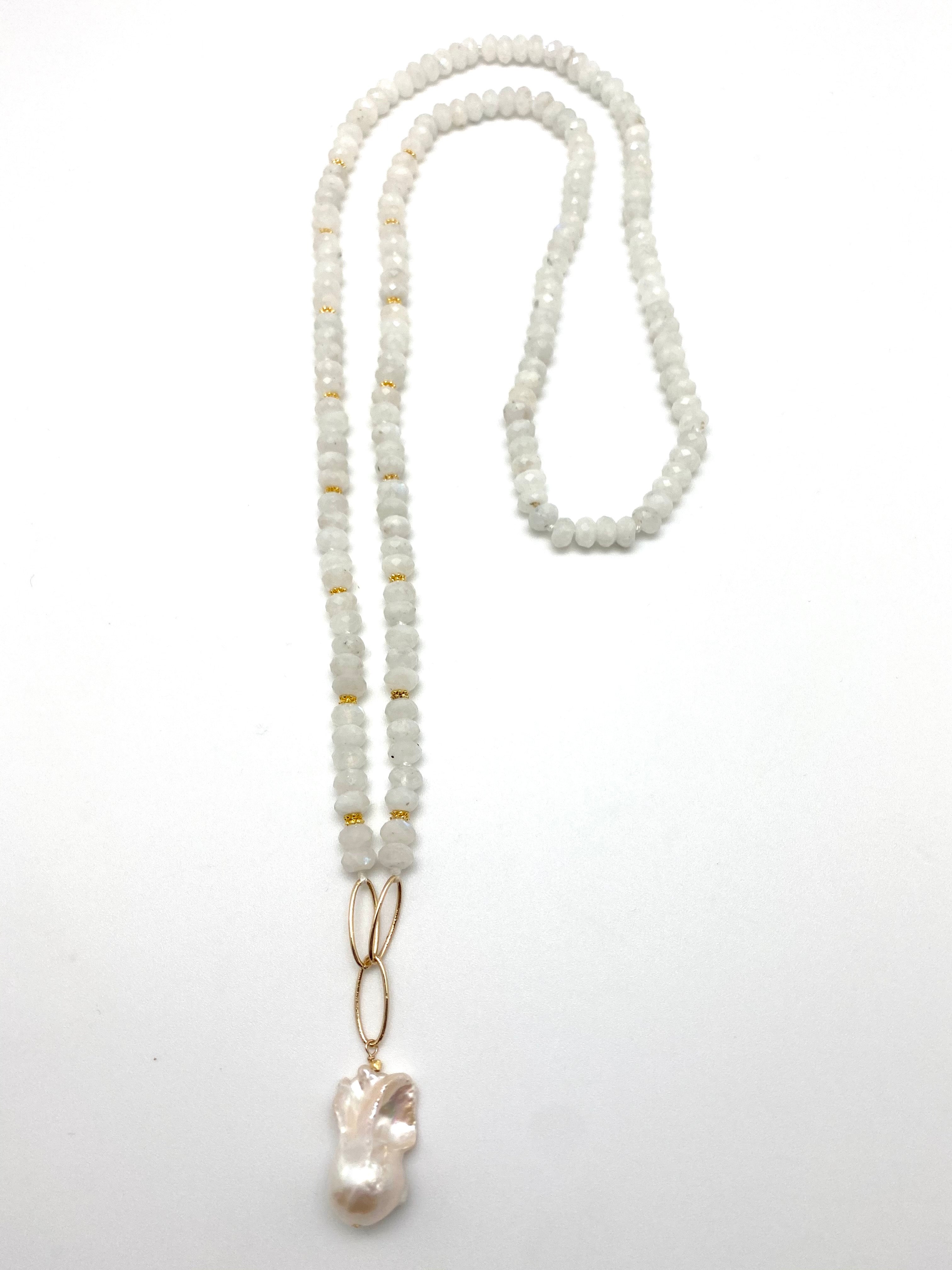 White moonstone with a white baroque pearl