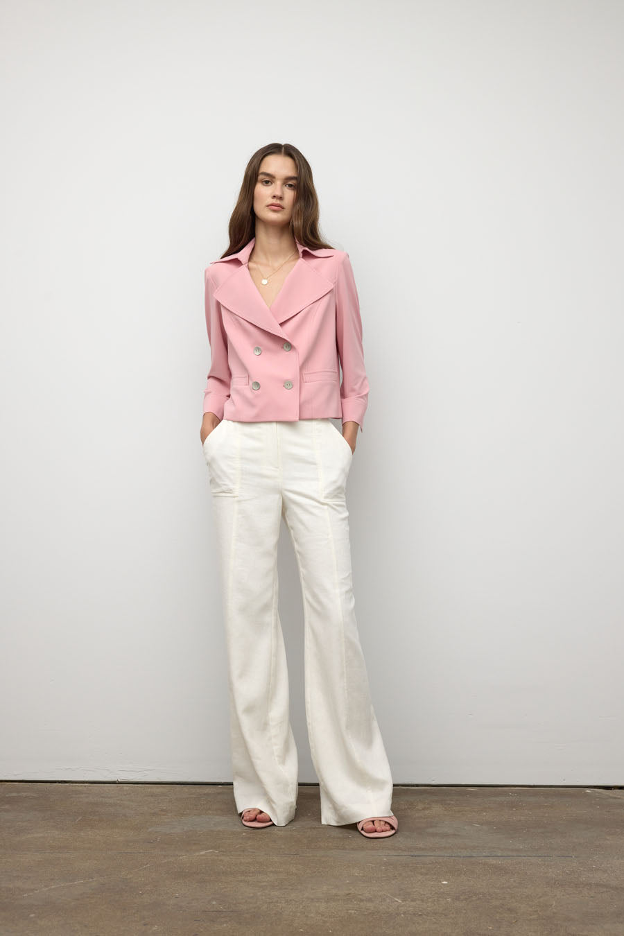 Embrace the matte jersey of our travel collection with this short jacket. Easy-care and comfortable for all occasions. You'll fall in love with the button detailing and cut.
